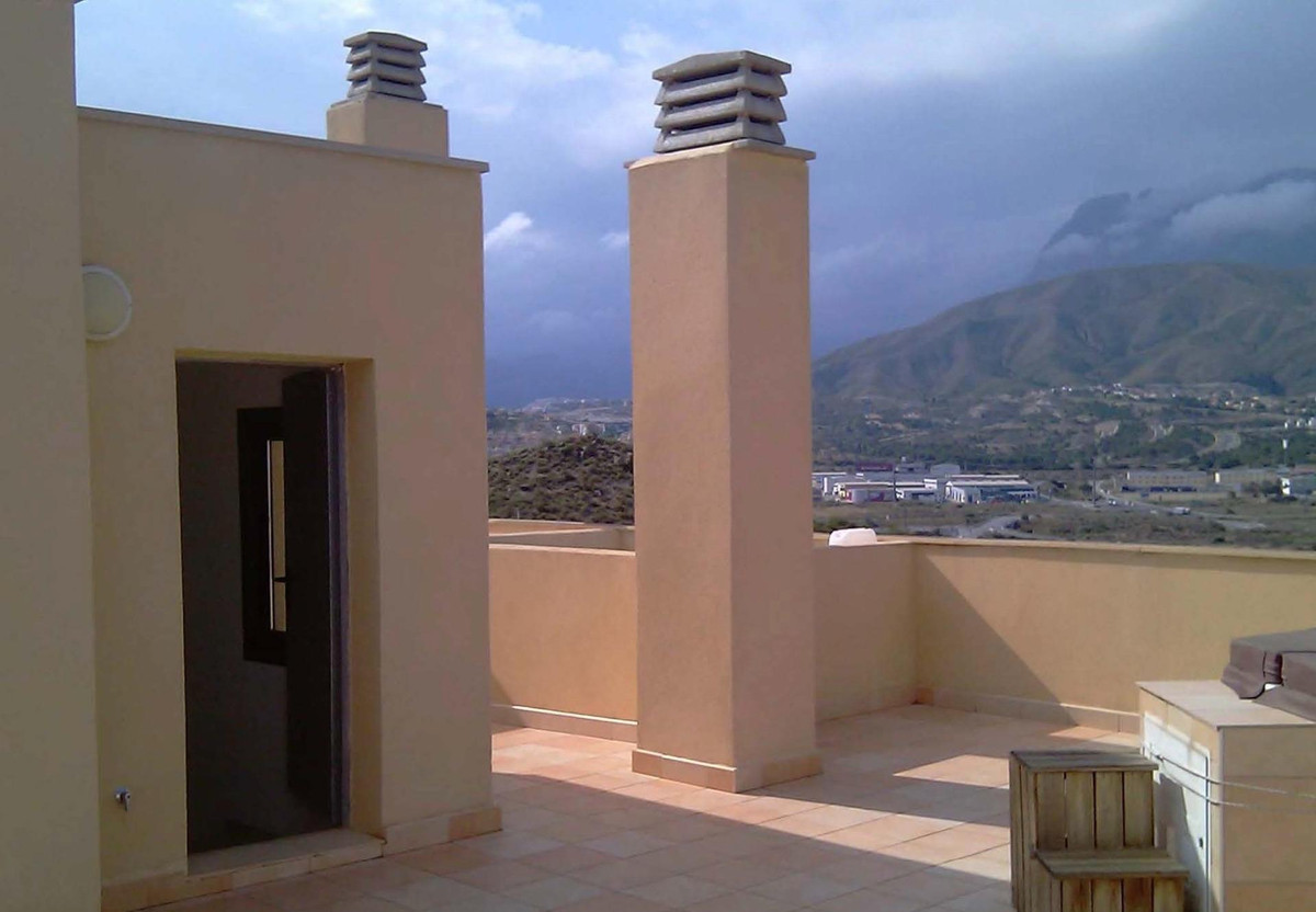 Spectacular duplex penthouse in Cala de Finestrat.It consists of an access floor with a bedroom with a built-in wardrobe and a toilet, access stairs to the upper floor distributed in a living-dining room with a large pergola terrace, a master bedroom with a built-in wardrobe, a large fully fitted kitchen with a ceramic hob and oven, a laundry room Closed clothesline and access stairs to the solarium on the private deck where an eight-seater Jacuzzi hydromassage bathtub is located. Unbeatable views in all directions.It has a parking space and a closed storage room located on the first basement floor.It belongs to an urbanization that has a community pool, large garden areas, paddle tennis court and children's play area.Just 800 meters from Cala de Finestrat!! Less than 10 minutes walking.Do not miss these luxurious views of the sea and all of Benidorm. Book your visit without obligation.