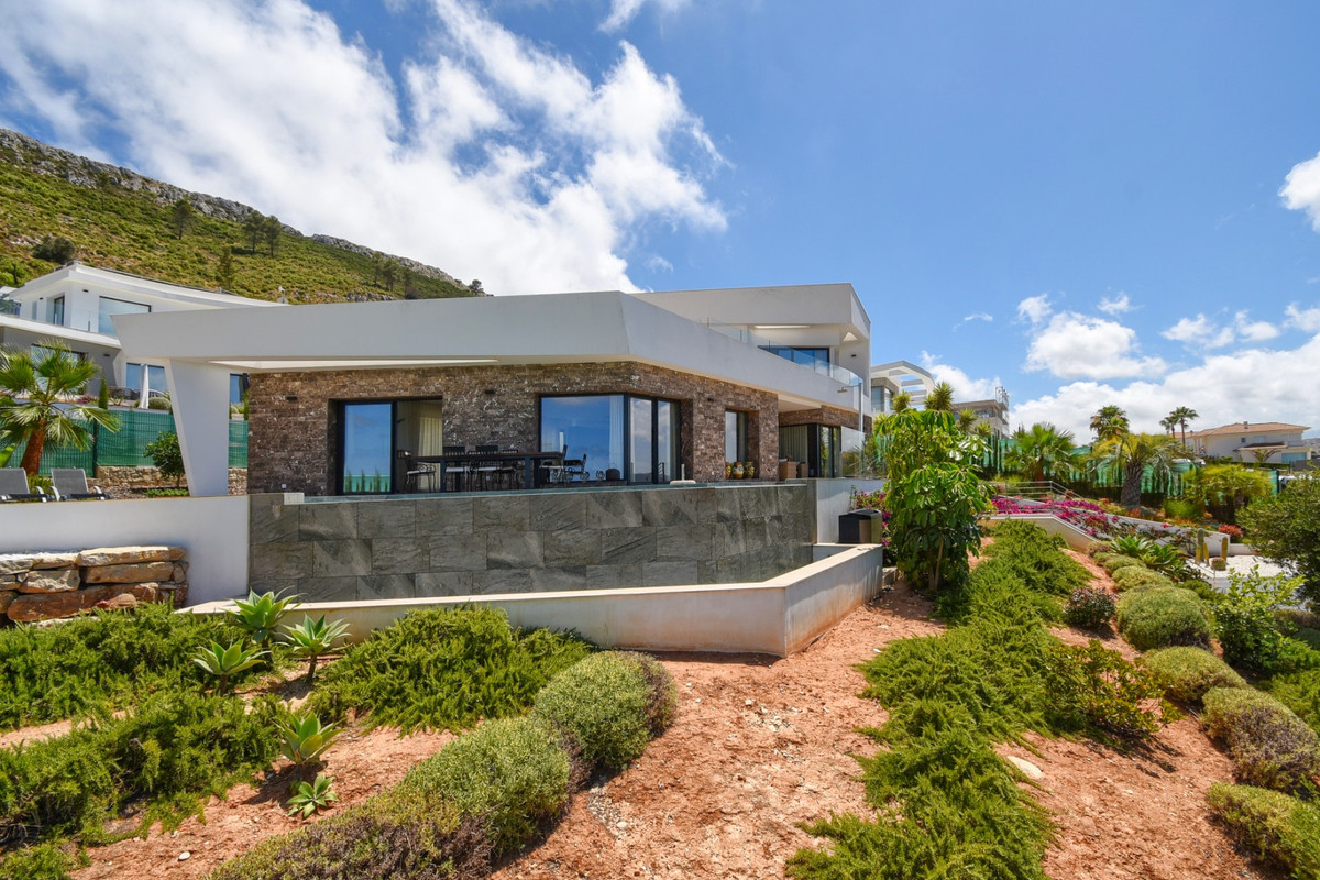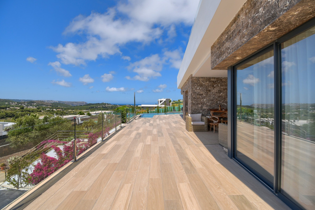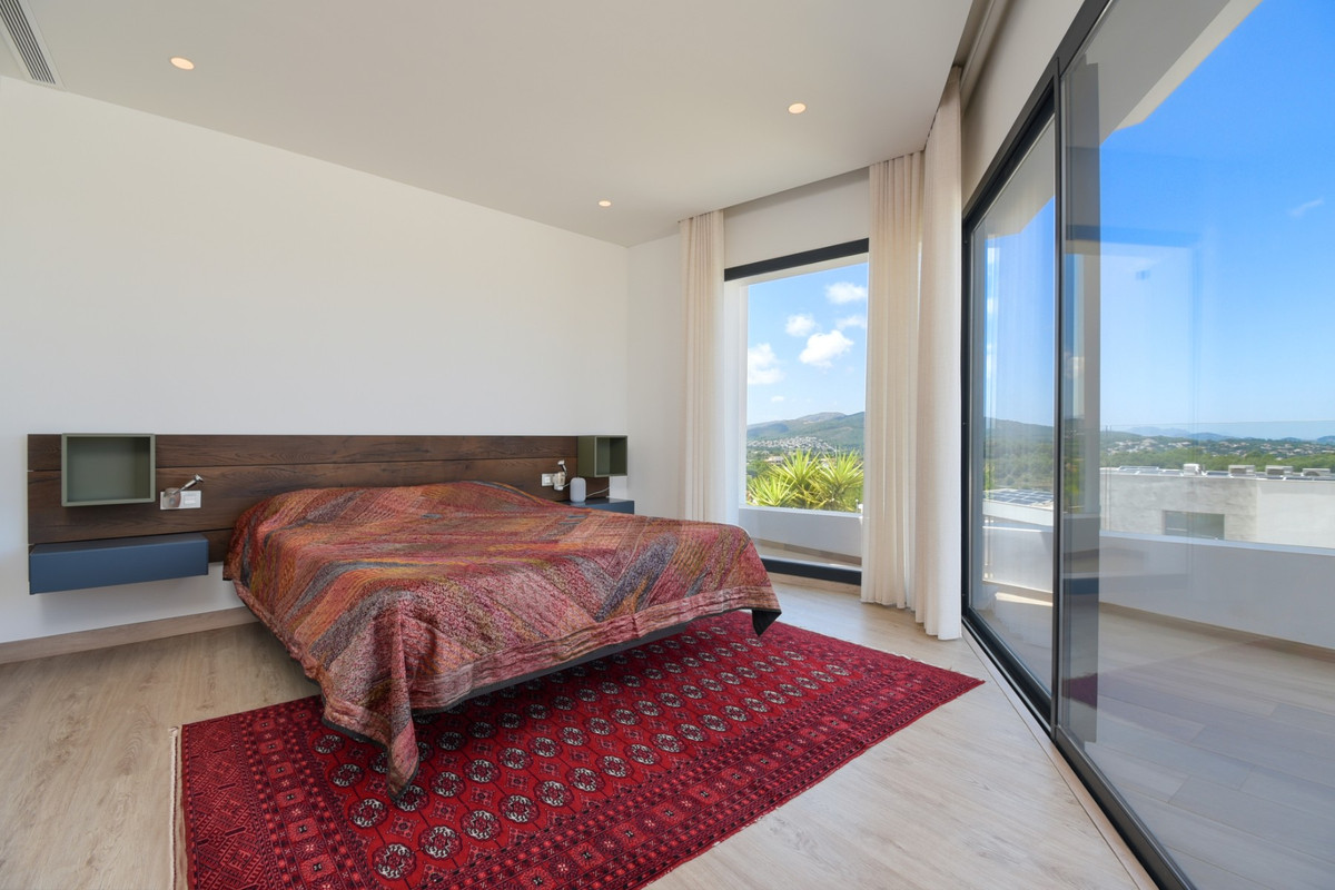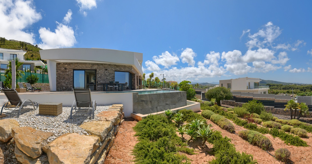 Villa built in 2020, located in the luxurious residential area of Monte Olimpo in Jávea, a few minutes from the beach, schools, restaurants, supermarkets, and the Golf course. This beautiful and modern villa with natural stone on part of the facade has views of the sea, the mountains and the valley.\n