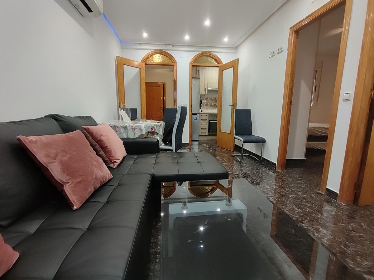 Semi renovated ground floor apartment located in Habaneras area. It has 2 bedrooms, 1 bathroom, renovated fitted and equipped kitchen and terrace. South facing and close to the beach.The house also has a parking space in the same building.Residential with communal poolArea with all services and shops