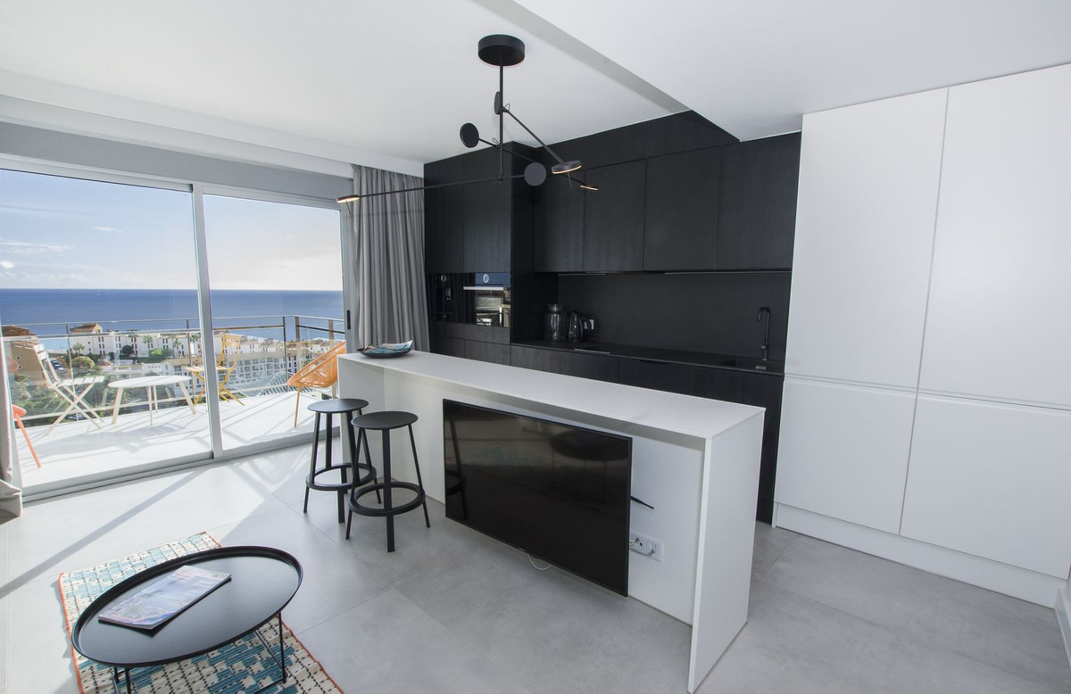 Modern duplex penthouse with panoramic view of the sea and the yacht harbor, located in a southwest-oriented building in a gated estate, in Altea, Mascarat district.