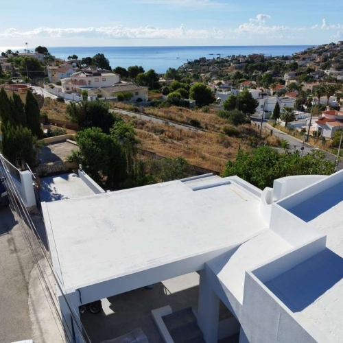 Sunny Mediterranean-style villa with the views to the sea and Peñón de Ifach, located on a private plot, in Maryvilla district, Calpe.