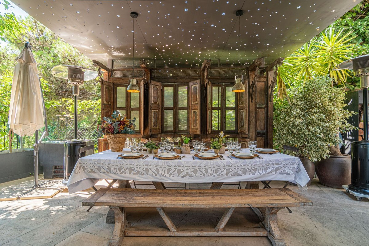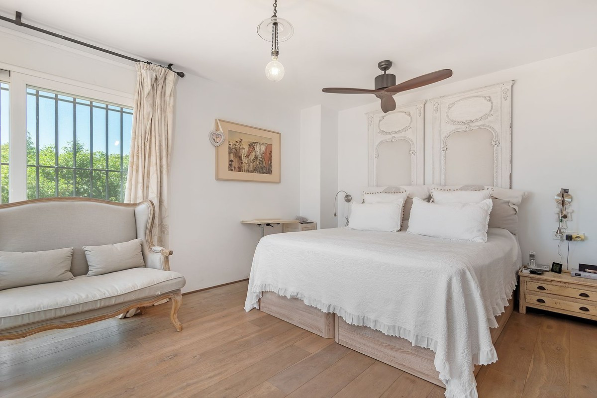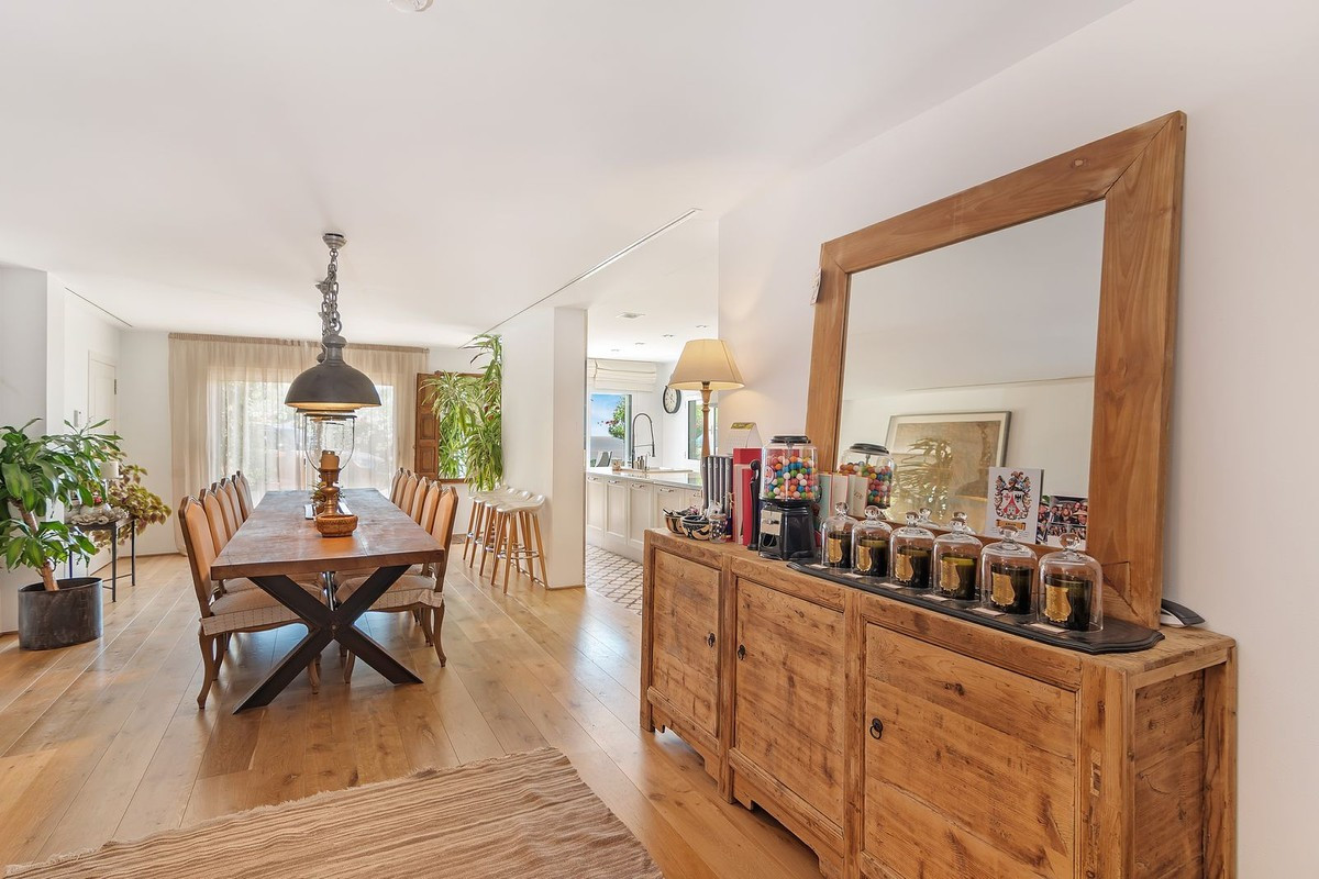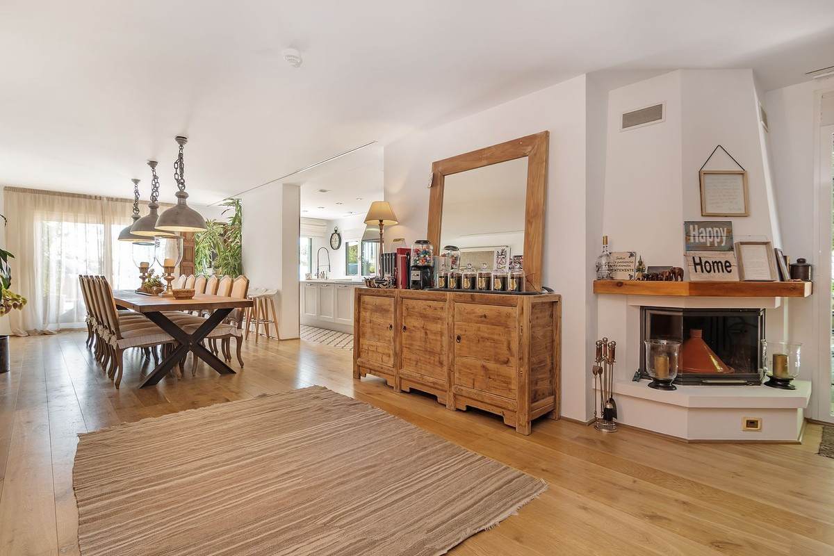 Floor 2: On this floor, you will find a main entrance hall, a spacious living room, a 58 square meter dining room with a central fireplace, and a spacious bedroom with capacity for four people and an en-suite bathroom with shower and dressing room. There is also a covered naya/terrace that opens onto the living room, offering beautiful views of the sea, the gardens and the island of Olla in Altea.\n