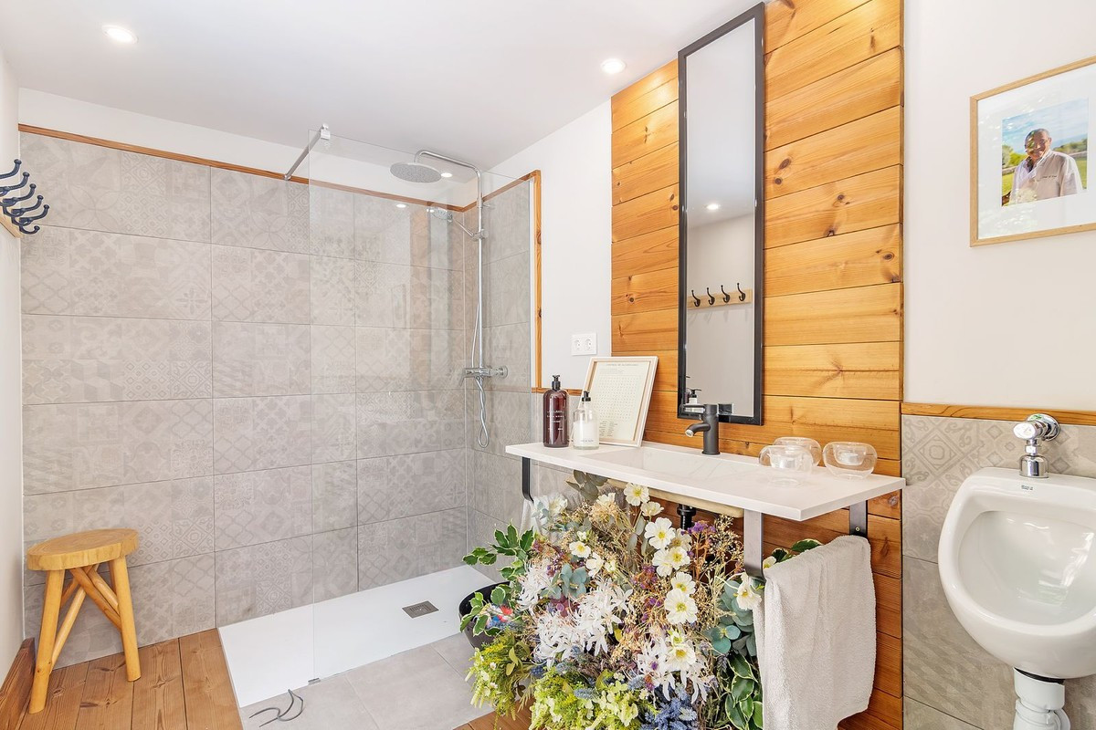 The property has underfloor heating for heating, central air conditioning and solar panels for hot water and heating. Outdoors, you will find an outdoor shower, a toilet and a changing room near the pool, as well as a log store near the barbecue. In addition, there is a wooden detached house consisting of a living room, a separate kitchen, a toilet and upstairs, two bedrooms and a bathroom with shower and dressing room. This house is ideal for service personnel or guests.\n