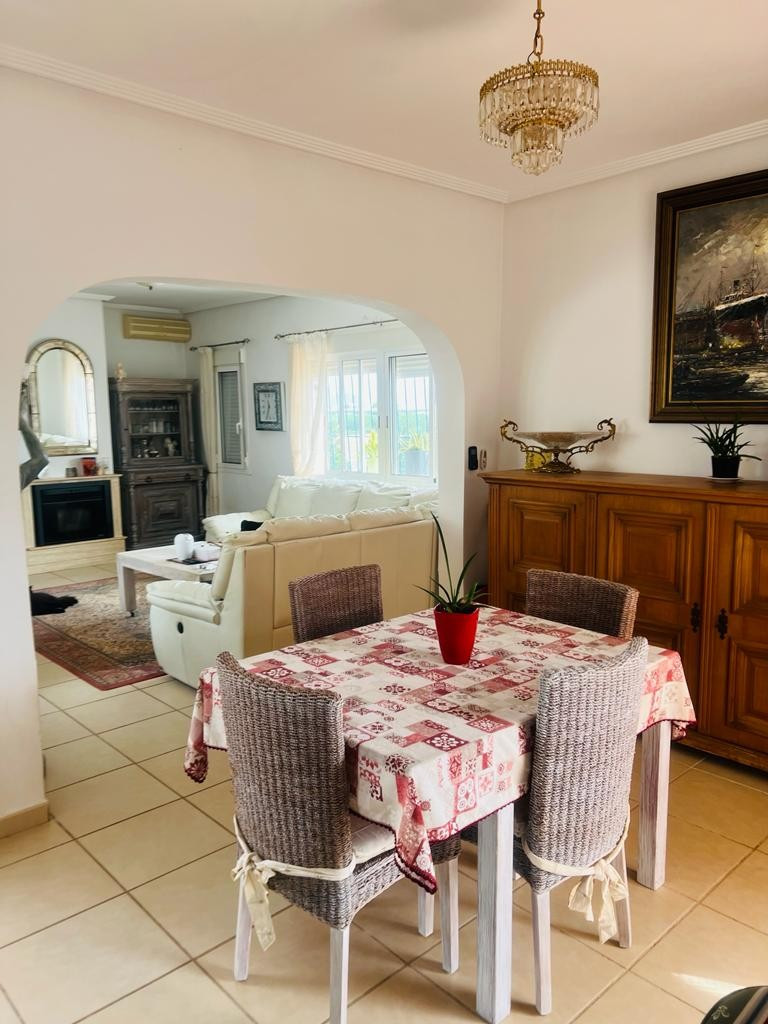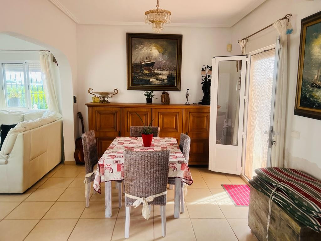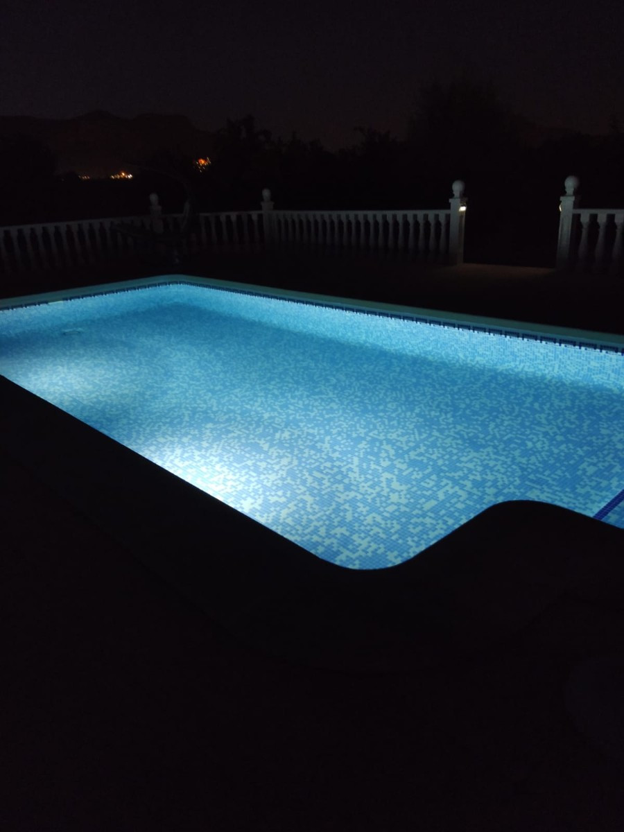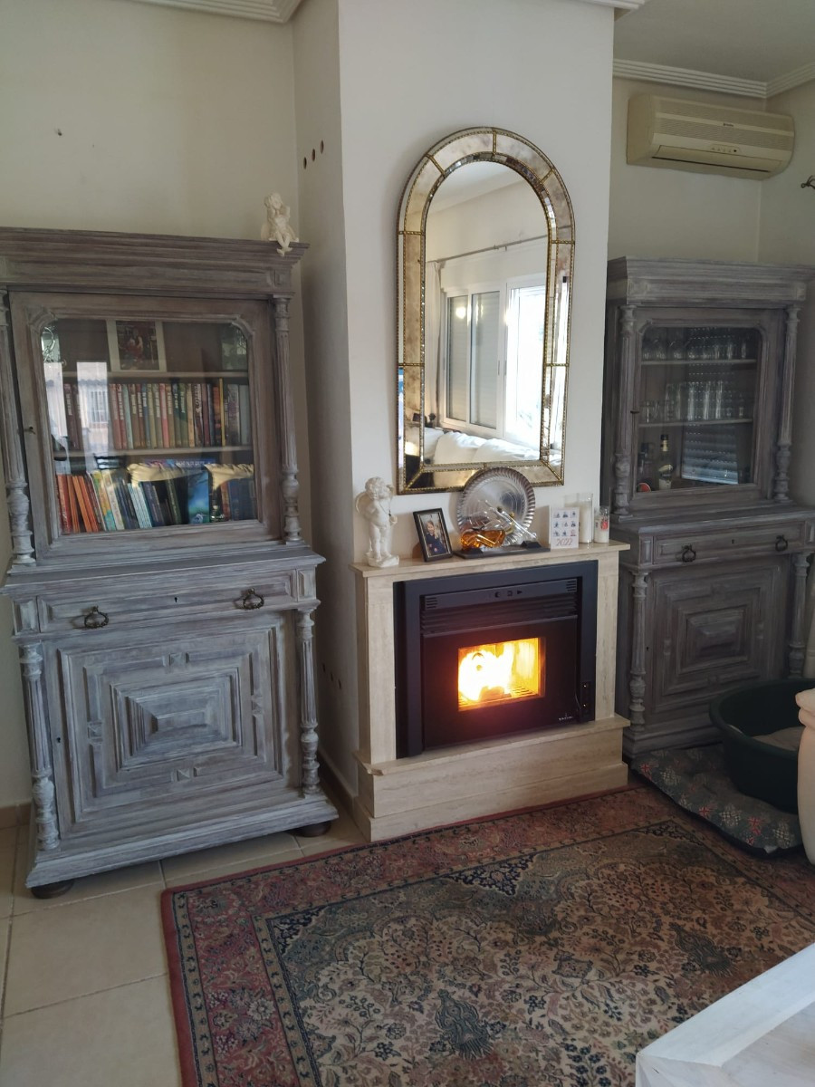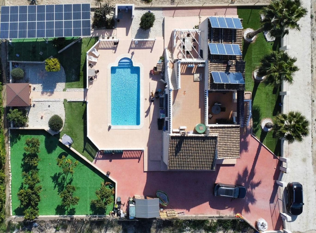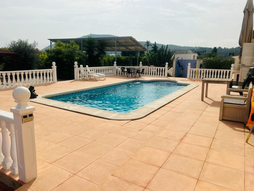 In addition to the dining area, at the rear of the house there is a south-east facing terrace that also enjoys a sun blind during the warm summer months. From this terrace you can overlook the beautiful garden and you also have a view of the 8mx4m swimming poolThis house is recognized by the municipality, but has not been legalized. There is a '"Certificado de Antigüedad" available and the municipality has granted a certificate of remission of the existence or non-existence of urban infringement, which ensures that the house can remain standing. ("Remisión certificado de existencia o no de infracción urbanística") Due to this recognition, SUMA/IBI must also be paid annually, but it is not possible to borrow for this property through a banking institution. There is water, sewerage and the house has solar panels, making it self-sufficient.