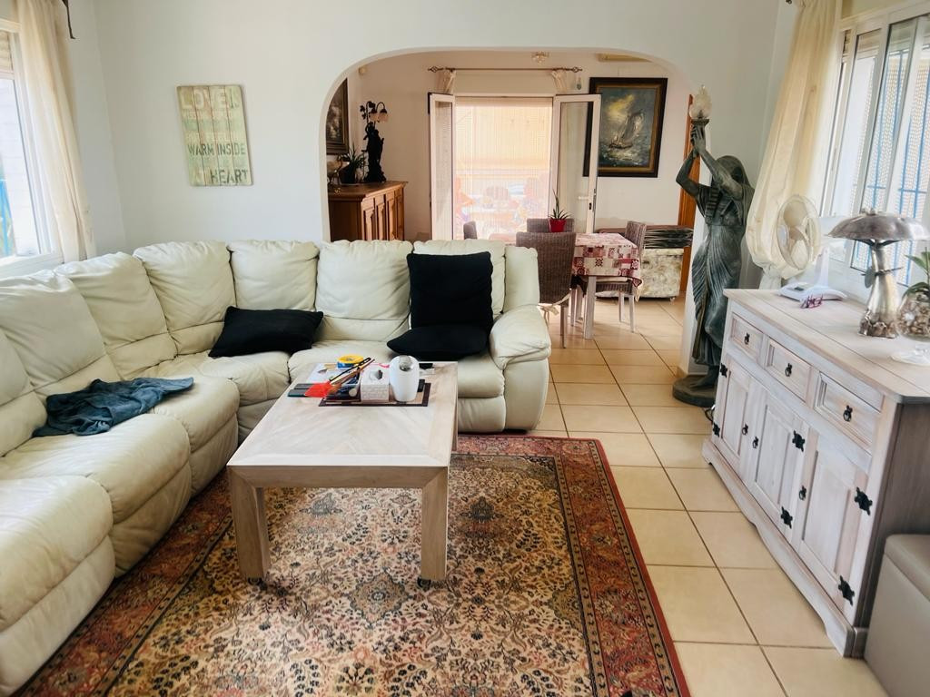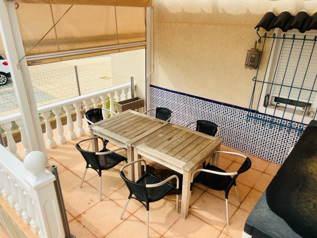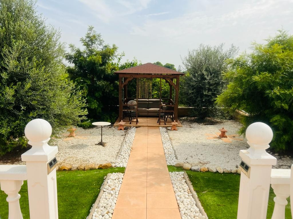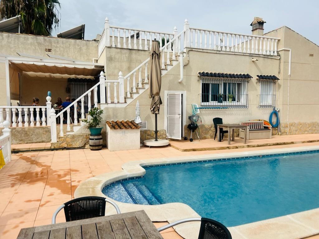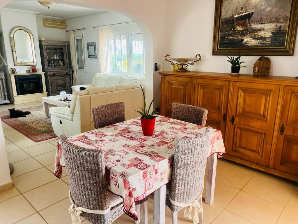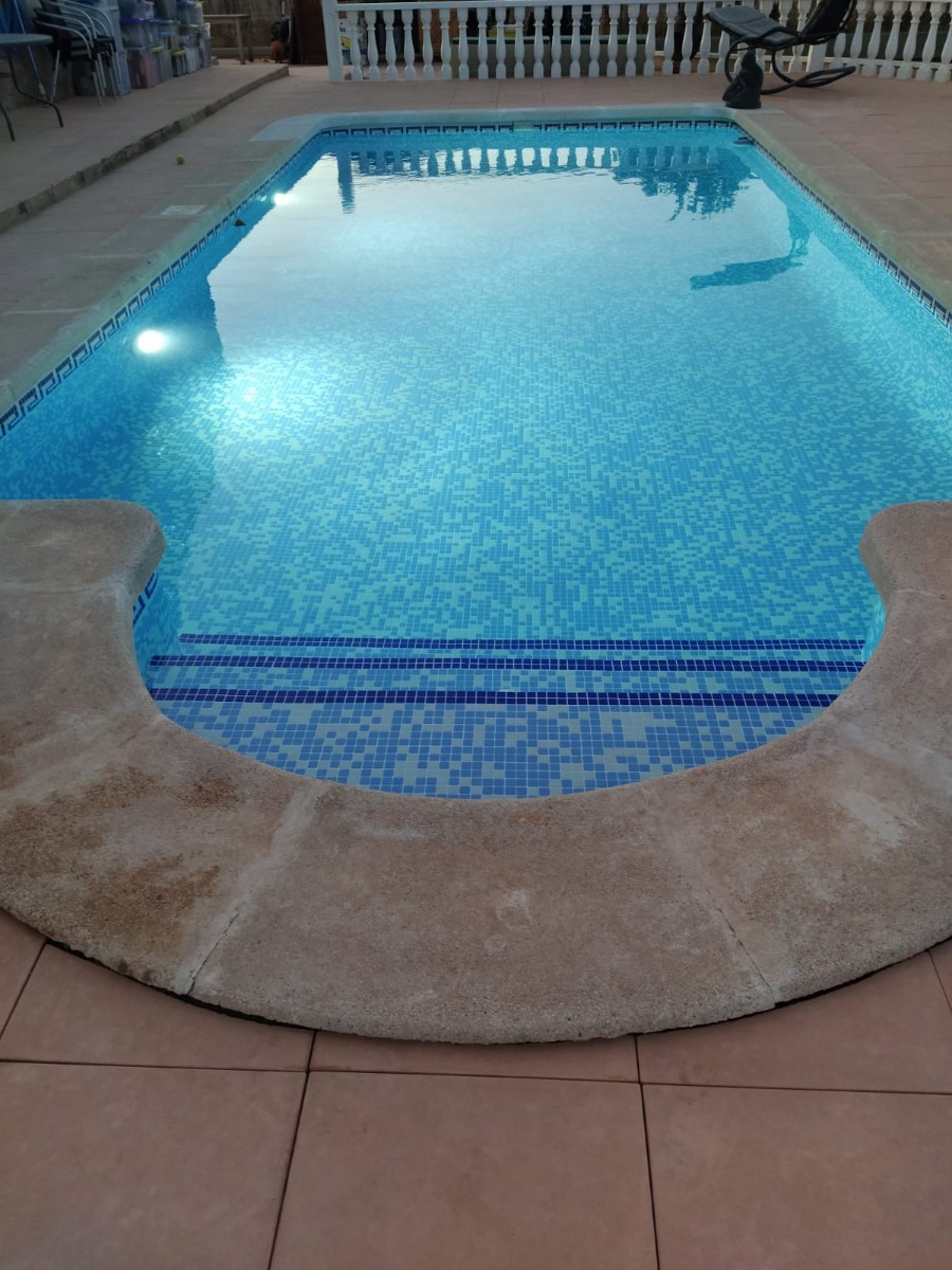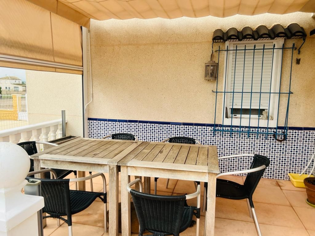 In addition to the dining area, at the rear of the house there is a south-east facing terrace that also enjoys a sun blind during the warm summer months. From this terrace you can overlook the beautiful garden and you also have a view of the 8mx4m swimming poolThis house is recognized by the municipality, but has not been legalized. There is a '"Certificado de Antigüedad" available and the municipality has granted a certificate of remission of the existence or non-existence of urban infringement, which ensures that the house can remain standing. ("Remisión certificado de existencia o no de infracción urbanística") Due to this recognition, SUMA/IBI must also be paid annually, but it is not possible to borrow for this property through a banking institution. There is water, sewerage and the house has solar panels, making it self-sufficient.