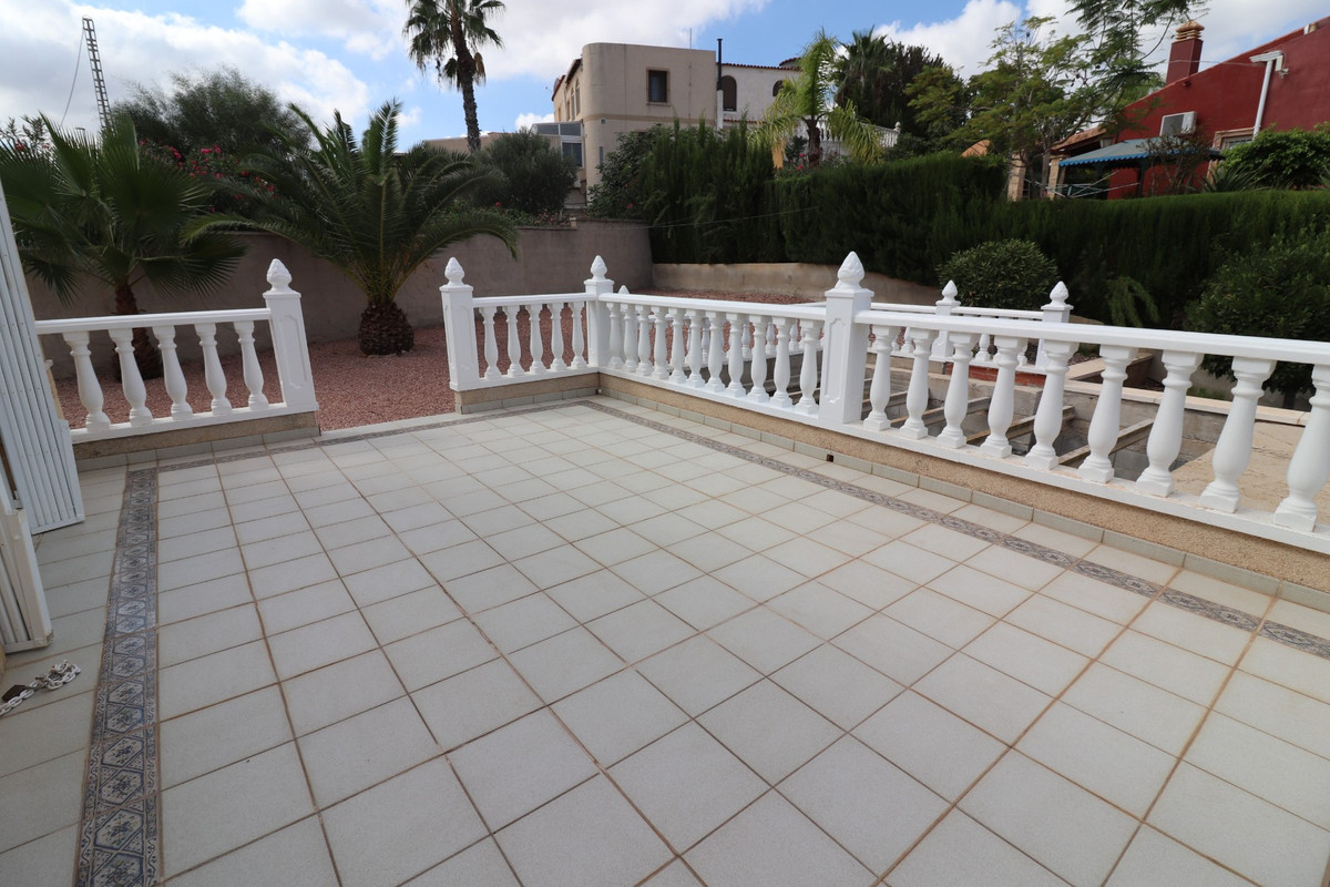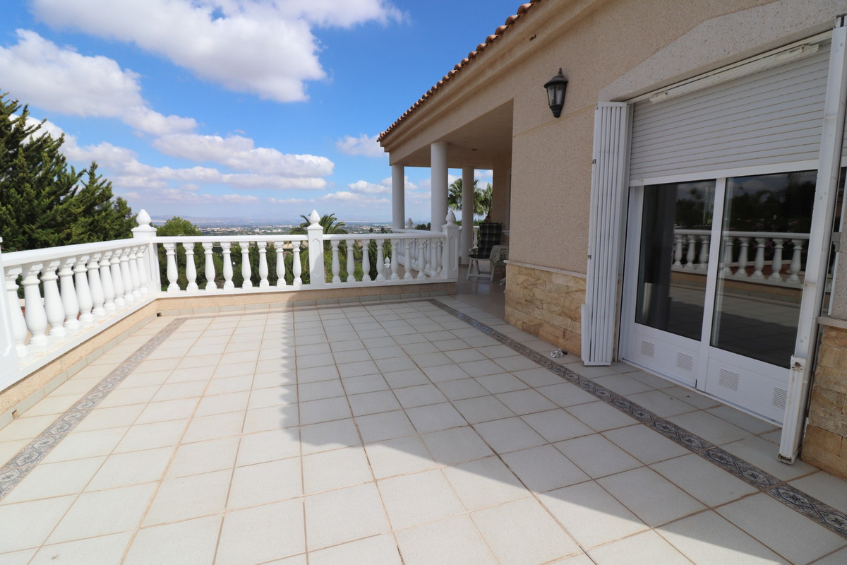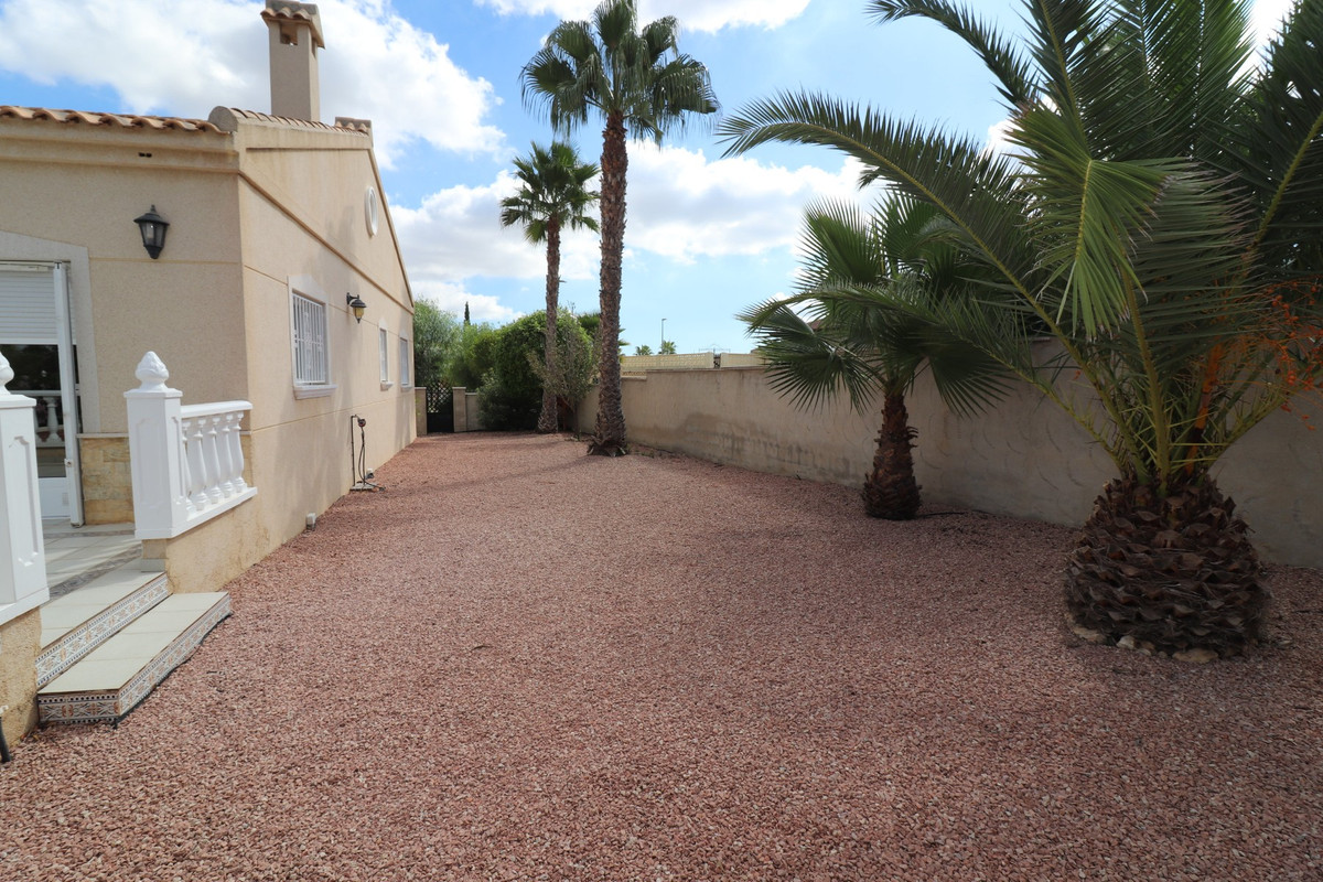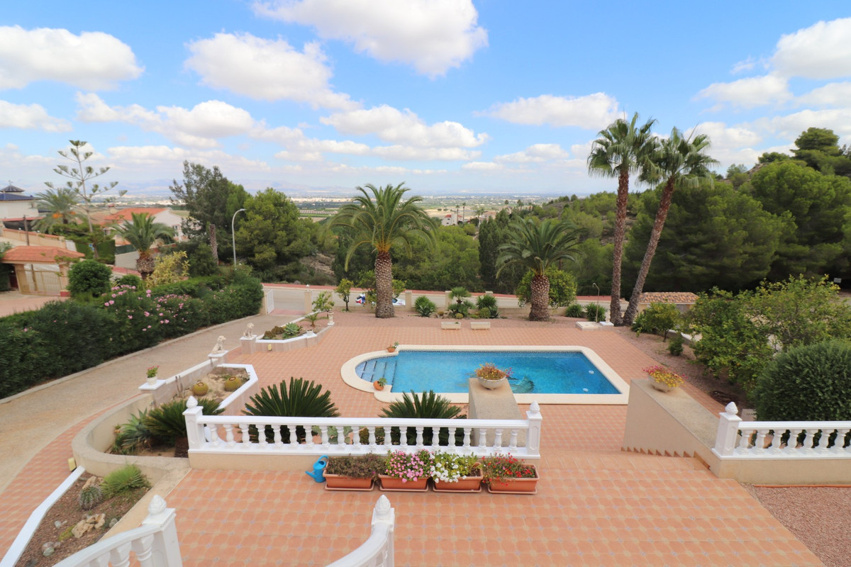 This Imposing 216m2, Three Bedroom, Detached Villa in Lomas de La Juliana is located in a very sought after residential area, with a tennis club at the entrance and La Finca 5* hotel, spa and golf course right on the doorstep, where you can also find a variety of eating places and shops.  Main chain supermarkets can be found in Almoradi and Benijofar which are just 5 minutes by car.  The beaches along the coast by car are approximately 20 minutes away.  This outstanding home occupies a 1220m2 private landscaped plot with the most extensive views you will find in the area.  The main living area of the villa is accessed via external staircase to an ´L´shaped covered terrace area, this then provides access into the lovely light living area, having a set of sliding doors and three sets of windows, feature open fireplace; incredible fitted kitchen/breakfast room; double bedroom and a family shower room.  The ground floor of the property is accessed externally and comprises of  lounge, archway into the fitted kitchen, bathroom and two double bedrooms.  The garden is pebbled and tiled with a long driveway leading to a garage and a carport; the pool area has tiled surround and there are plenty of mature trees, bushes, palm trees surrounding.  Extras include underfloor heating throughout the main floor, air conditioning, fitted wardrobes in all bedrooms, irrigation system.\n