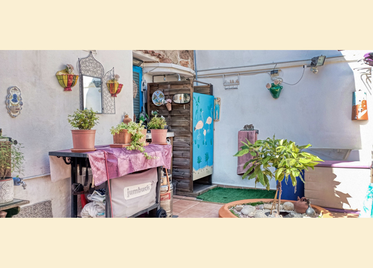 - Outdoor Oasis: Din uteplats är mer än bara ett utrymme; det är en reträtt. Upptäck ett pensionat, utekök, toalett, dusch, förråd och blomstrande fruktträd. Dränering och elektrisk installation säkerställer funktionalitet och bekvämlighet.