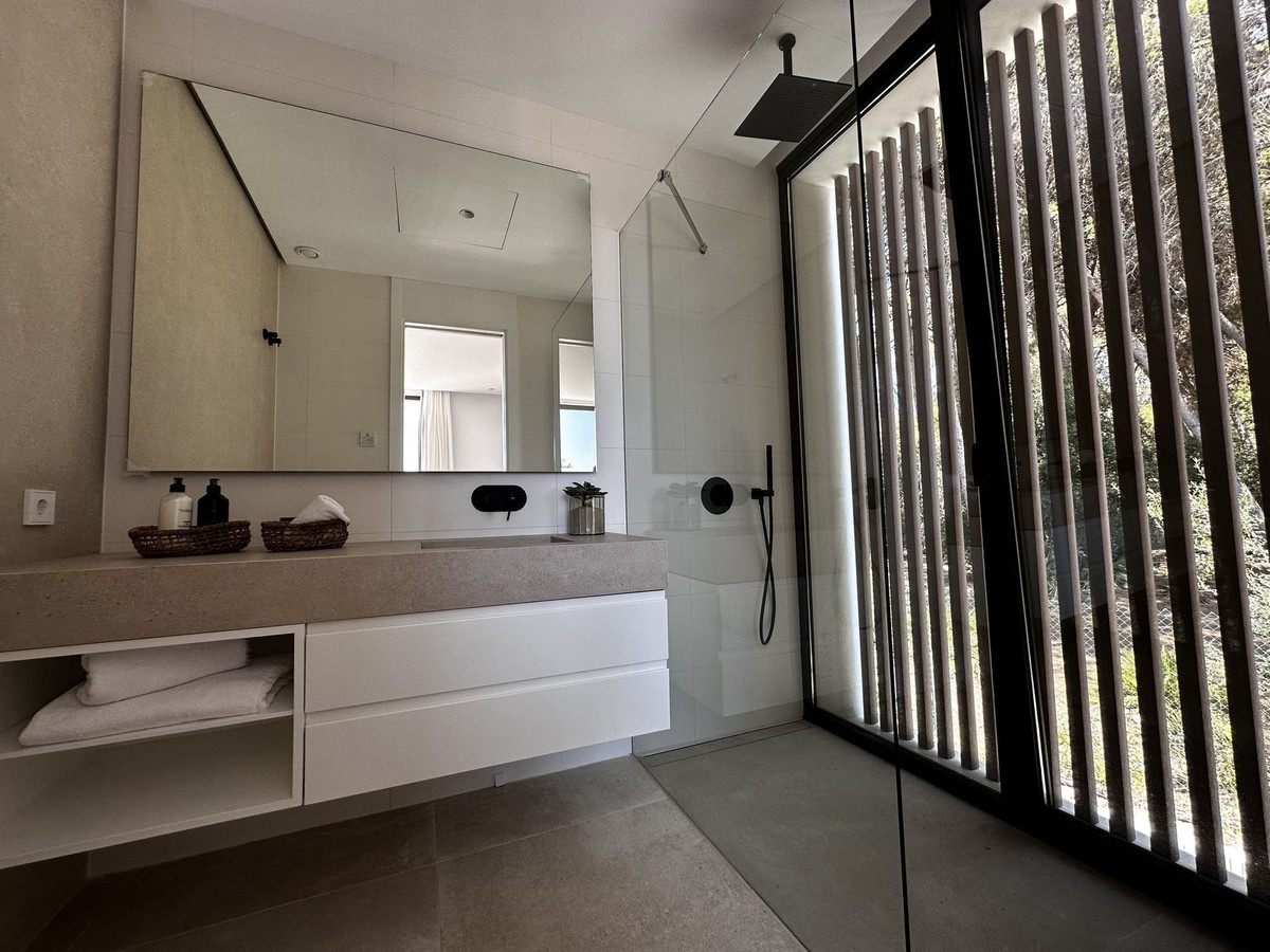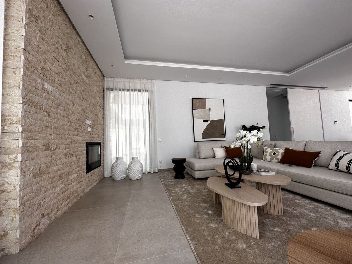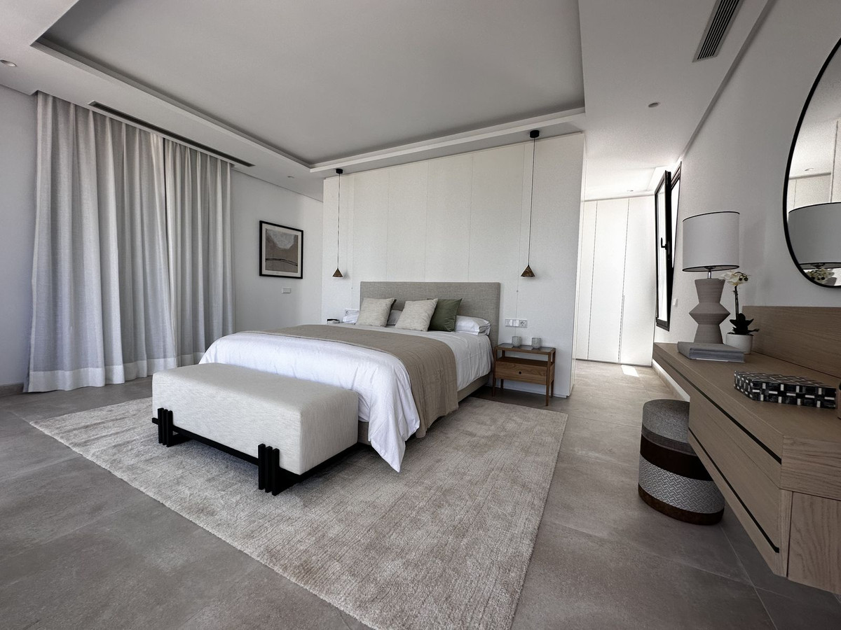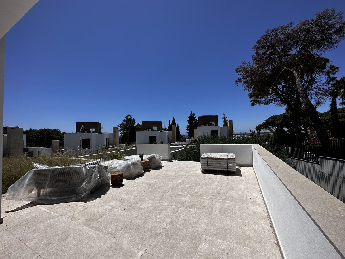 With a plot of 1000m2, a total living area of 730m2, large terrace of 225m2 and includes 5 bedrooms and 5 bathrooms, a spacious living room, an open plan kitchen equipped with the highest quality furniture and appliances, a private lift connecting each level of the property, cinema, sauna and hammam, under floor heating, a rooftop solarium with beautiful views towards the sea and private garage for 2 cars + 2 parking spaces.