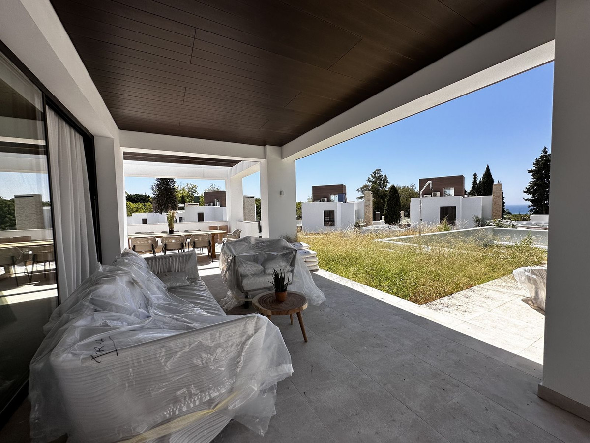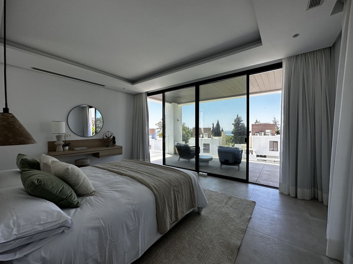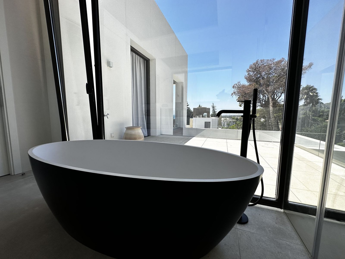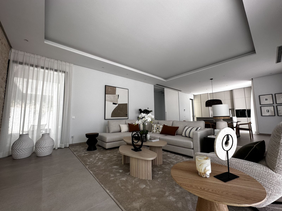 With a plot of 1000m2, a total living area of 730m2, large terrace of 225m2 and includes 5 bedrooms and 5 bathrooms, a spacious living room, an open plan kitchen equipped with the highest quality furniture and appliances, a private lift connecting each level of the property, cinema, sauna and hammam, under floor heating, a rooftop solarium with beautiful views towards the sea and private garage for 2 cars + 2 parking spaces.