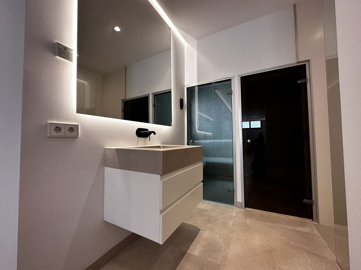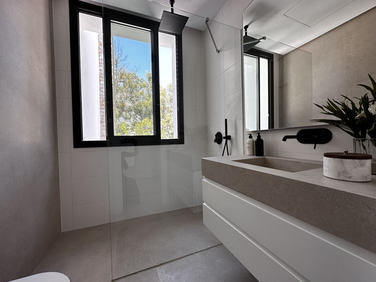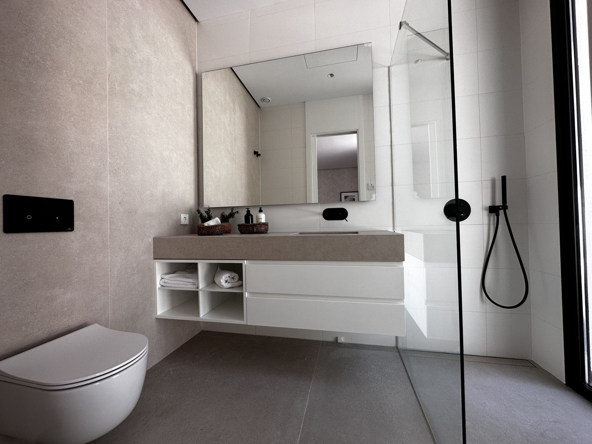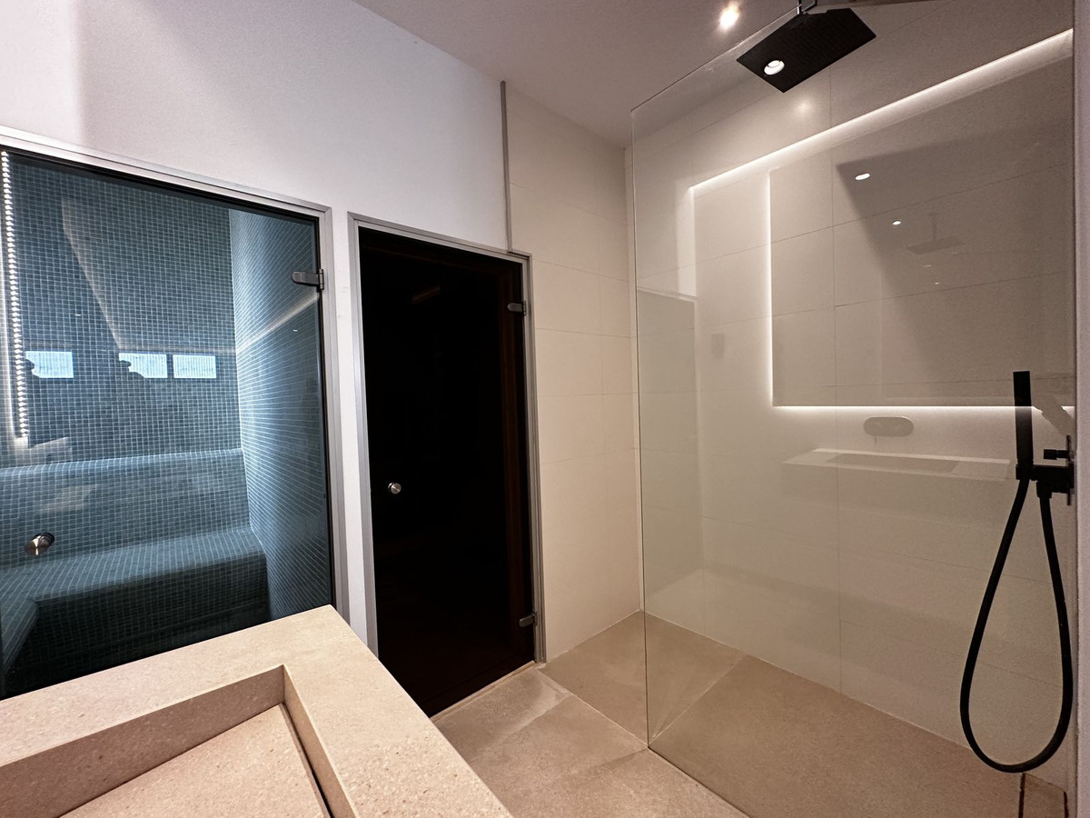 With a plot of 1000m2, a total living area of 730m2, large terrace of 225m2 and includes 5 bedrooms and 5 bathrooms, a spacious living room, an open plan kitchen equipped with the highest quality furniture and appliances, a private lift connecting each level of the property, cinema, sauna and hammam, under floor heating, a rooftop solarium with beautiful views towards the sea and private garage for 2 cars + 2 parking spaces.