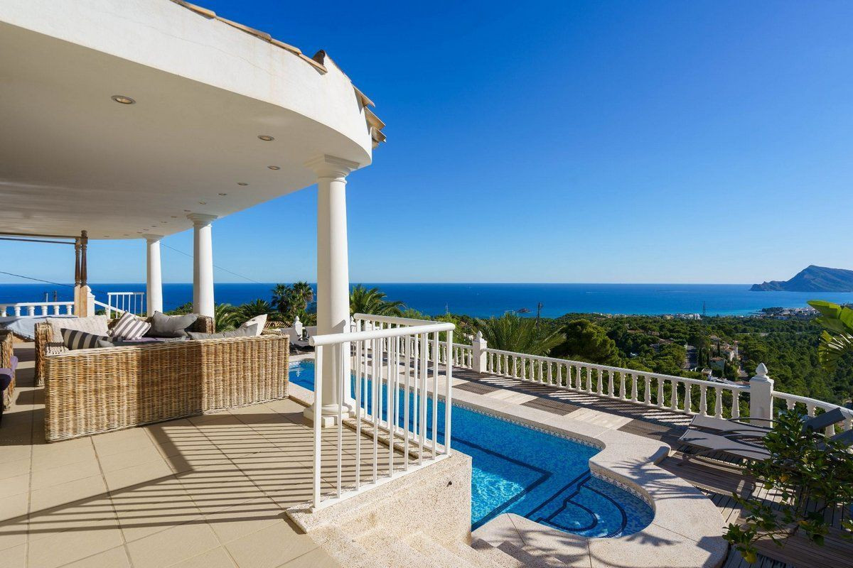 This perfectly modernized Mediterranean-style villa is located in a privileged and very private location in Altea, on a corner plot, and just a few minutes from the city center, the beach, the Don Cayo golf course, and many renowned restaurants.