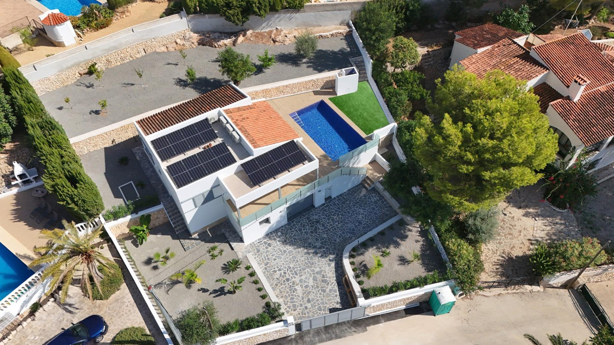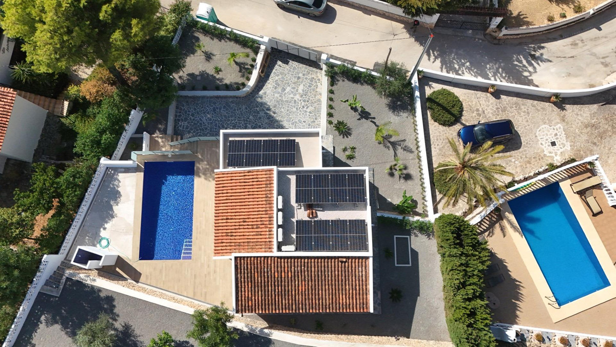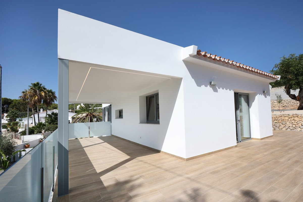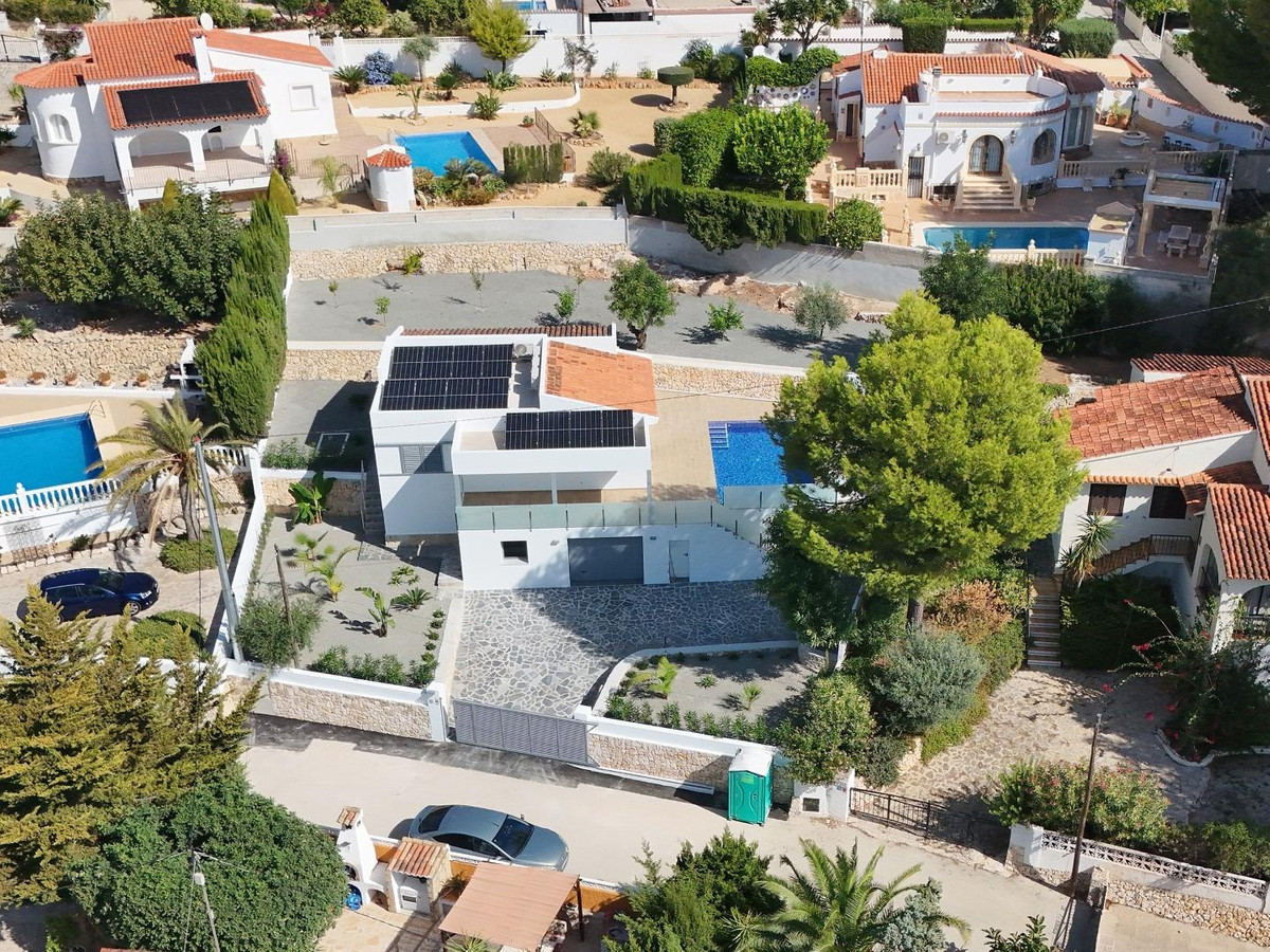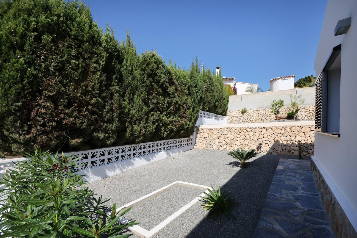 Renovated villa with private pool, in La Fustera area, Benissa.Divided into 2 floors, it includes 3 double bedrooms, 2 bathrooms with shower, living-dining room with equipped kitchen, closed garage in the basement, large terrace, own pool, and garden.Located in the area known as La Fustera, a quiet residential area of chalets, belonging to the municipality of Benissa, but located a short distance from the towns of Calpe and Moraira, where you will find all kinds of shops and services, and just 1500 meters from the beach.Built with excellent qualities such as: Heating and air conditioning, LED lights throughout the house, Fully equipped kitchen with granite countertop, Bosch appliances, with 60 cm refrigerator, ceramic induction hob, dishwasher, oven and extractor hood, Laundry room in Ground floor with granite countertop, sink and washing machine, Bathrooms with glass shower screen and sink cabinet, Solar hot water plus 150 liter electric tank, 4 x 8 m pool. with lights and terrace of approx. 80 m2, G-shaped outdoor shower with hot water, Technal® Soleal aluminum exterior carpentry, with Climalit glass and security, Mallorcan blinds in rooms, Mosquito nets in rooms, Armored entrance door, Garage with automatic door, Interior wooden carpentry lacquered in white, breathable washable plastic paint, fully finished garden, with anti-weed and gravel mesh, with installed programmable drip, completely fenced plot with access doors with intercom and remote control, porcelain stoneware tiles, non-slip on terraces, solarium, stairs and porch., Alarm, Pool and garden maintenance included for one year from purchase.