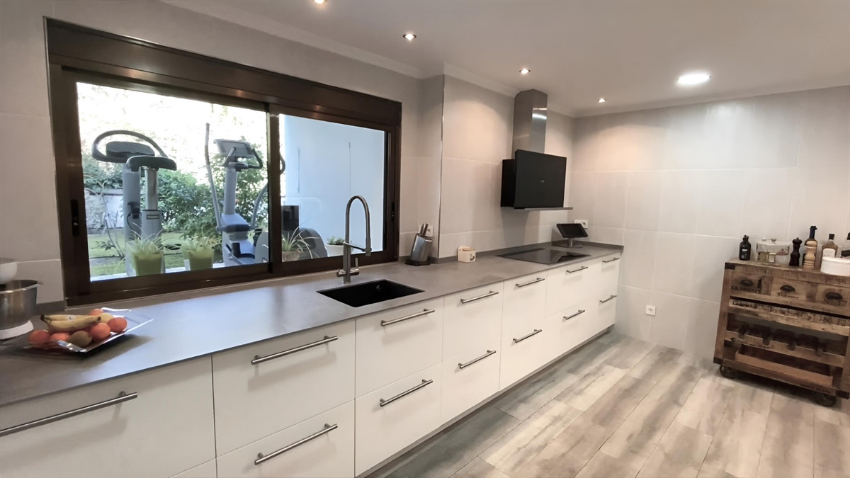 Upon entering the door, you will be greeted by an impeccable tropical garden , meticulously maintained, with an innovative irrigation system with agricultural water. Relax by a stunning pool , which boasts of a one-of-a-kind island . For lovers of the outdoors and evening evenings, the garden has various terraces and a fully equipped outdoor kitchen .\n