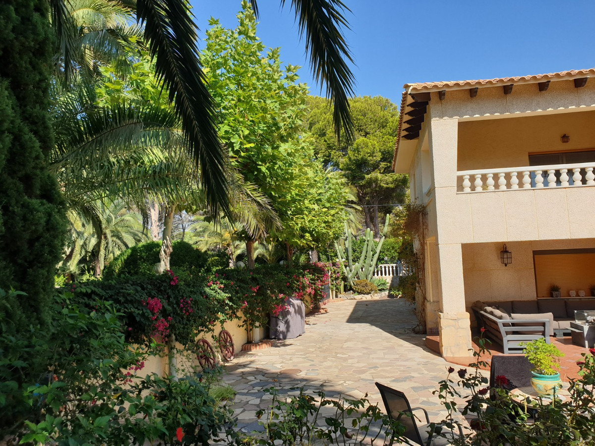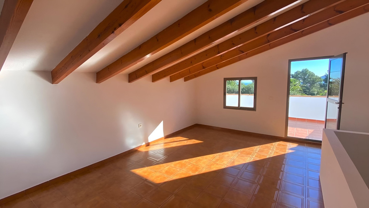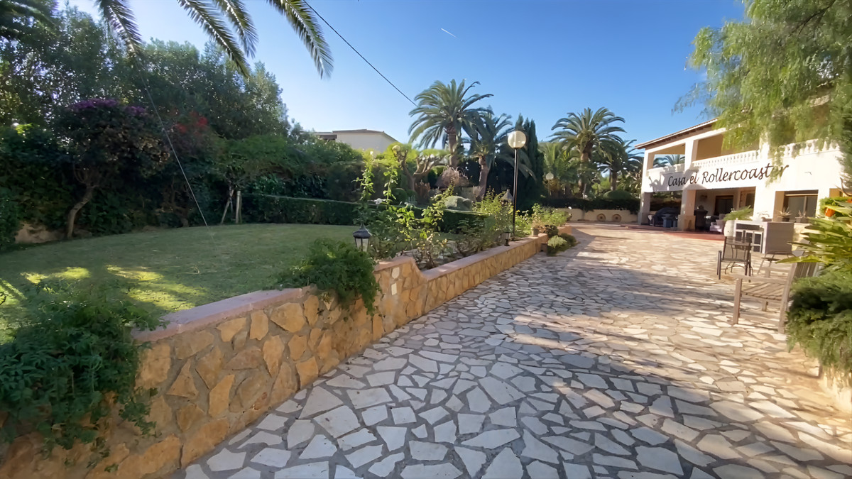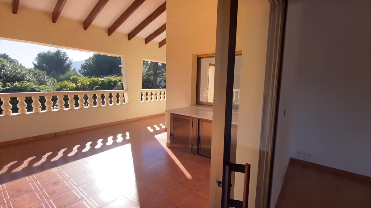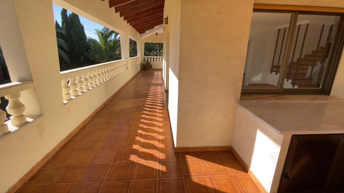 From the upper floor, be dazzled by the vast balcony of more than 60 square meters , which hugs the front of the house and from which you can admire panoramic views: from the fascinating garden and pool, through the mountain , to the sea and the horizon of Albir.\n