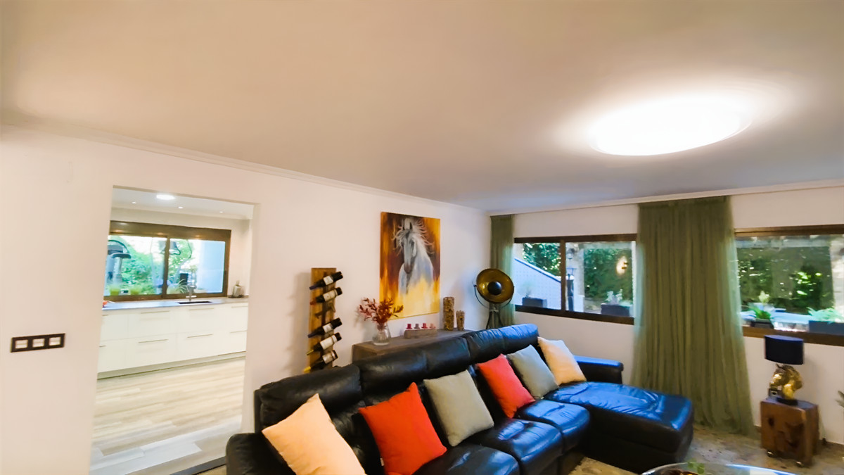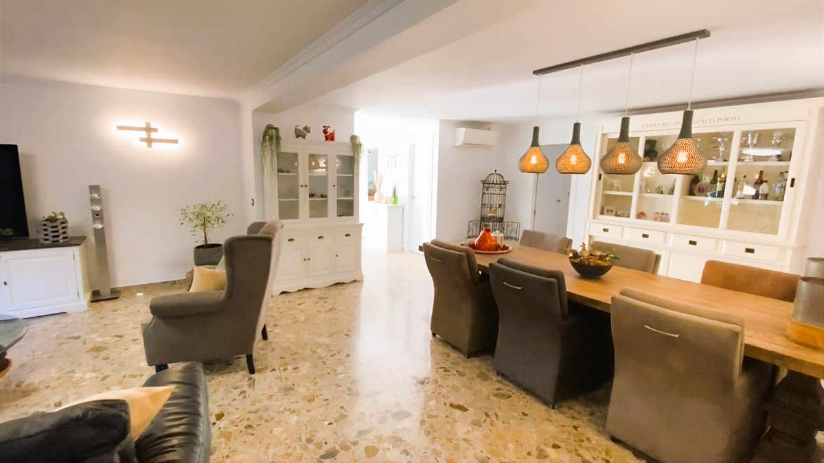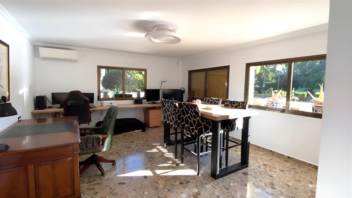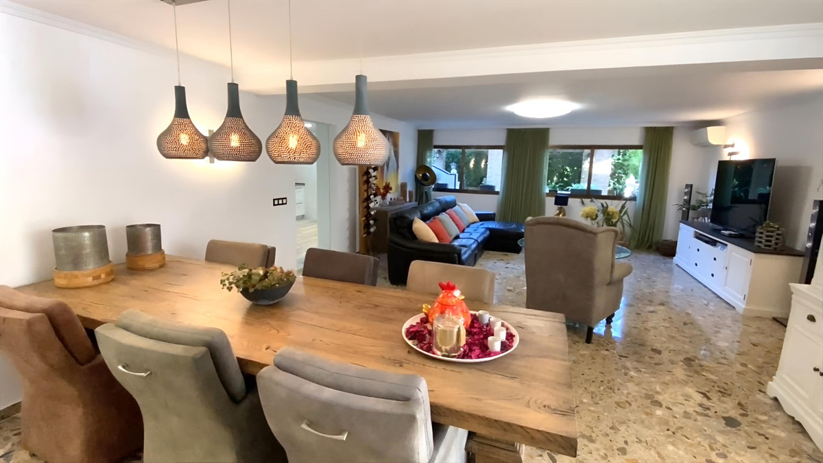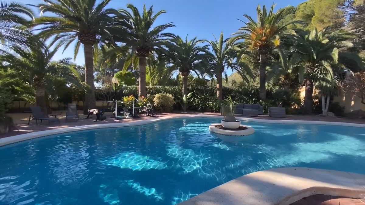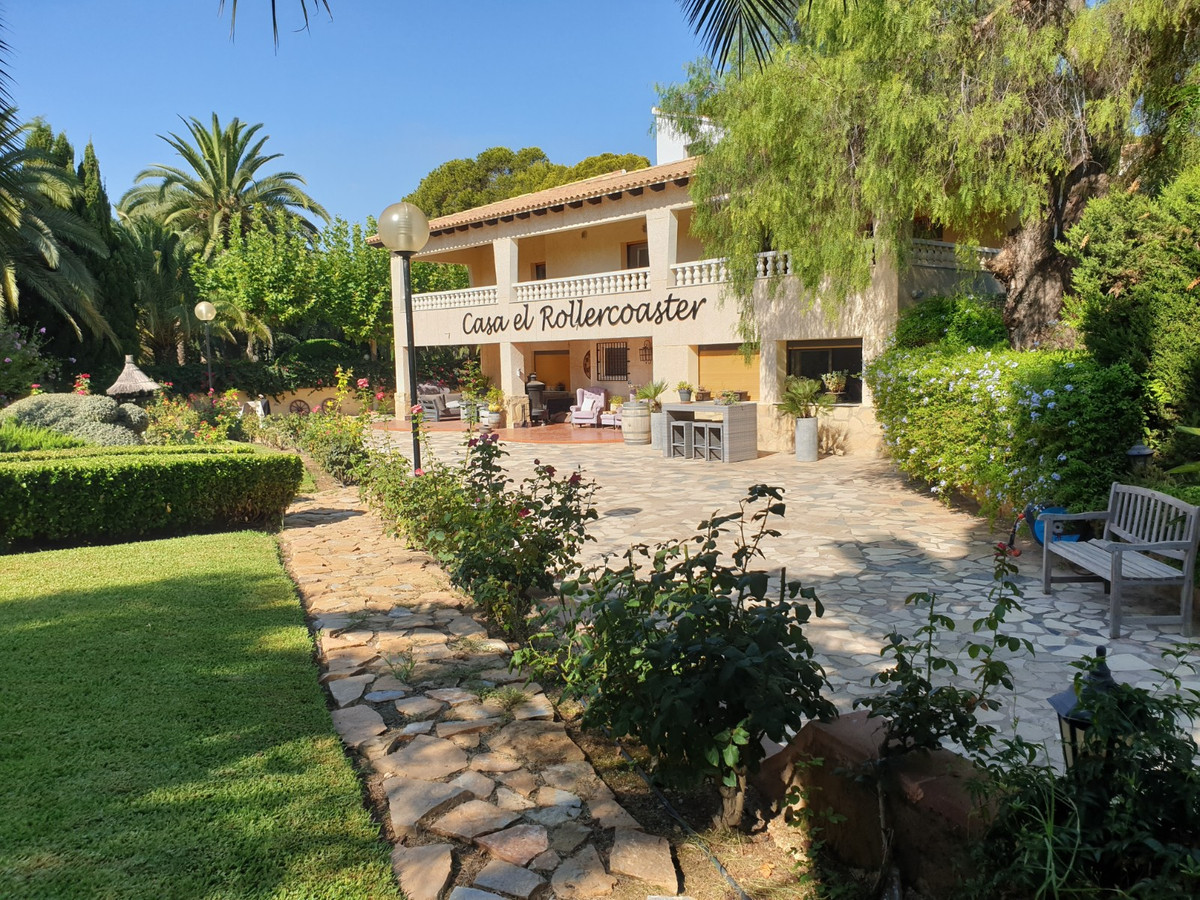 From the upper floor, be dazzled by the vast balcony of more than 60 square meters , which hugs the front of the house and from which you can admire panoramic views: from the fascinating garden and pool, through the mountain , to the sea and the horizon of Albir.\n