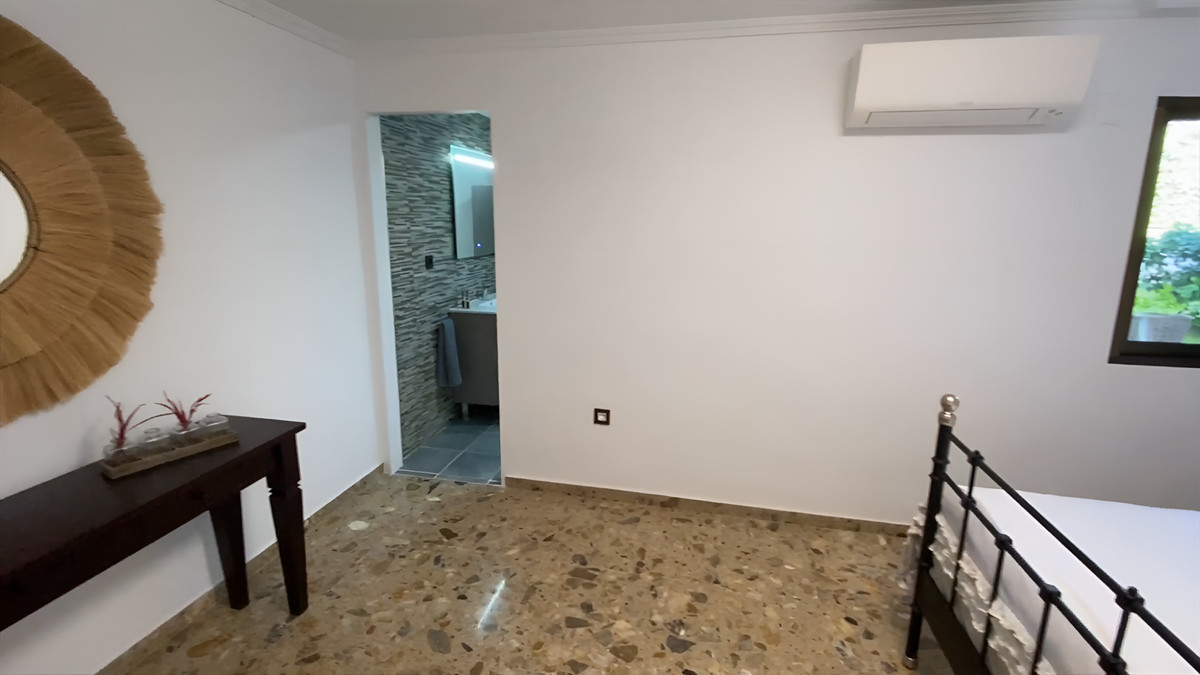 Detached villa , completely renovated in 2022 , located in a privileged enclave on the outskirts of Alfaz del Pi and a stone's throw from the charming town of Albir . Surrounded by the serenity offered by the beautiful palm trees of its private drive, this magnificent residence enjoys sun all day thanks to its south-west position.\n