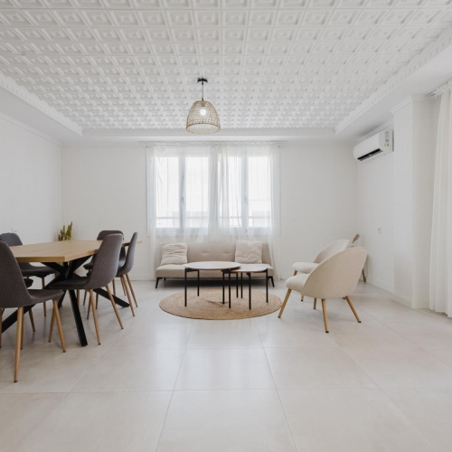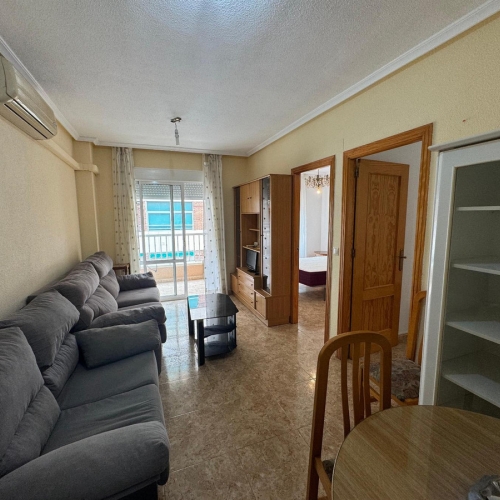 Lovely apartment totally reformed in fifth plant with seen cleared. It consists of 2 bedrooms, living/dining room, 1 bathroom with window, equipped and furnished kitchenette.South facing terrace with totally unobstructed views. The price includes all the furniture and decoration that are also new. Communal poolGood house in the area of Nueva Torrevieja