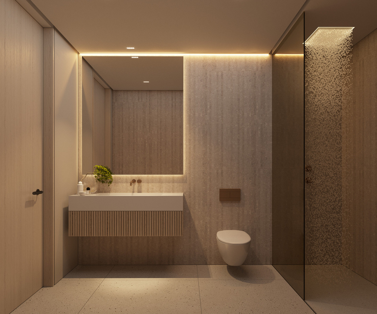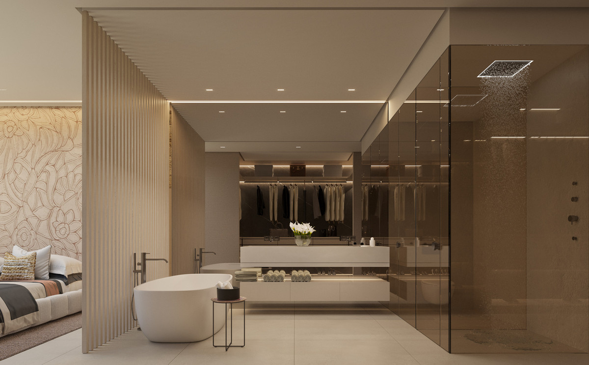 På denna nivå hittar du fyra utsökta sovrum, alla med eget badrum och privat terrass. Master-sviten, med nästan 40 kvadratmeter utrymme, omfattar en klädkammare och ett elegant designat badrum med öppen planlösning, vilket ger en lyxig svitupplevelse.