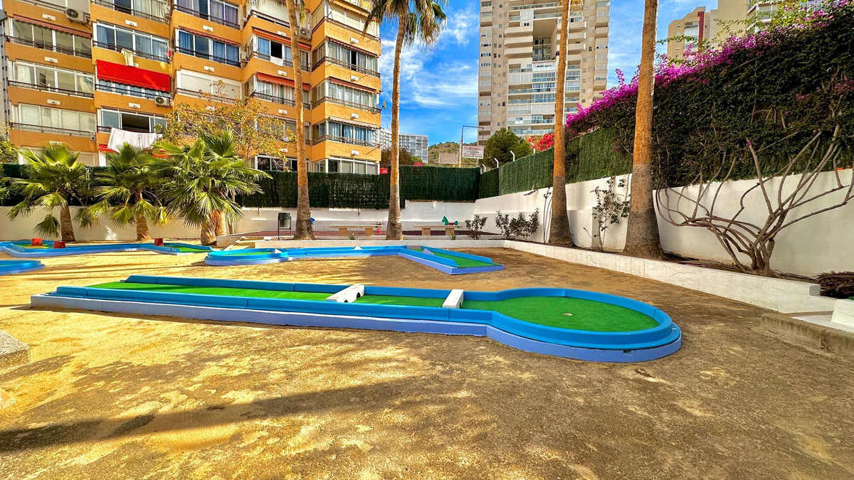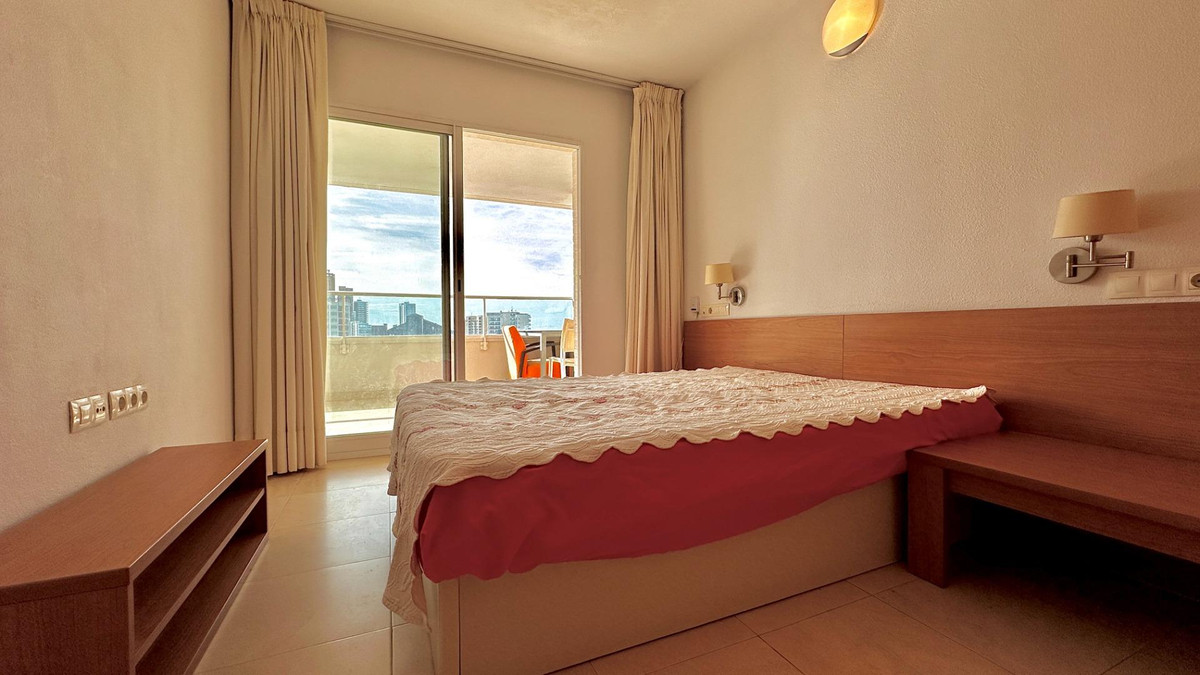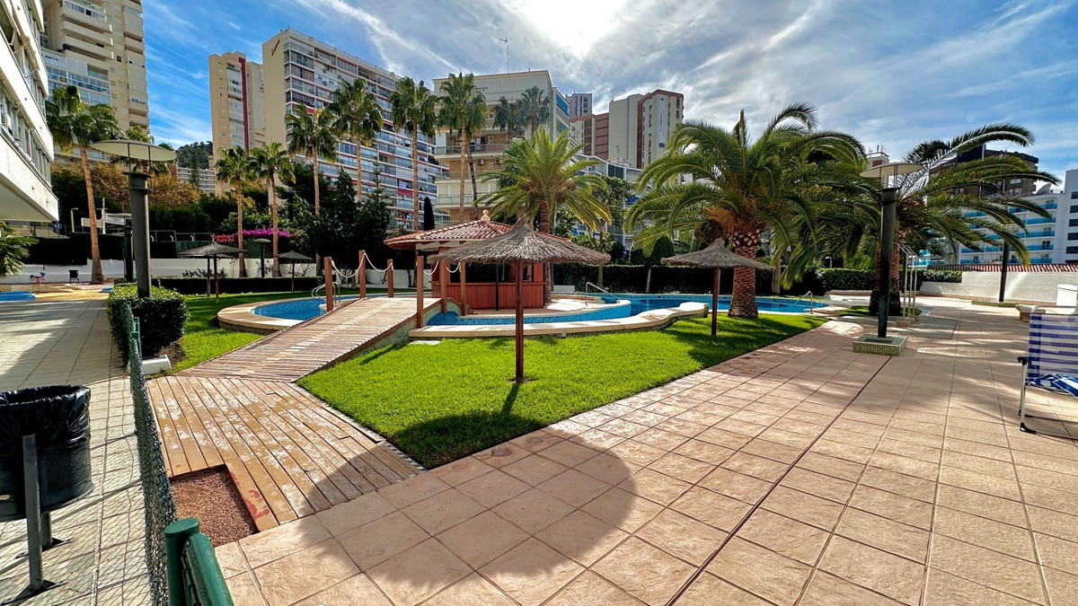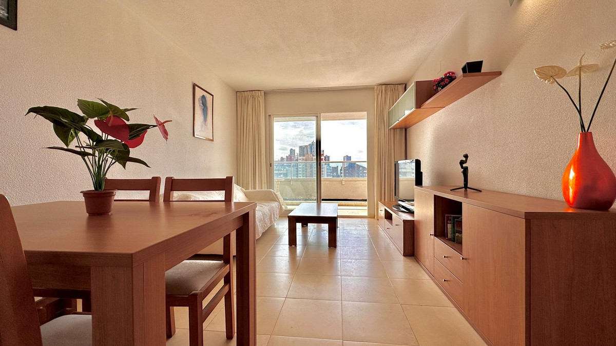 This charming flat is located just 400 metres from Benidorm's famous Levante beach, offering a perfect location for an unbeatable investment. The property features a fully equipped kitchen, a bathroom with shower, a bedroom with built-in wardrobe and a bright living room that opens onto a terrace with panoramic views of the city and the Mediterranean Sea.The residential complex offers complete facilities including a swimming pool and gym. In addition, you can enjoy sporting activities such as paddle tennis and table tennis, while the youngest members of the family will be entertained in their own play area.Don't miss out on this wonderful opportunity! Contact us to arrange a viewing and discover all that this flat has to offer!