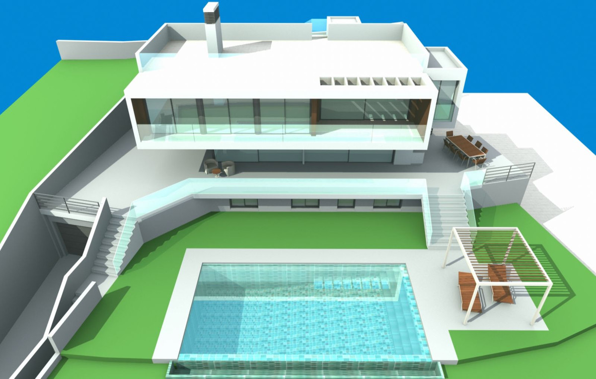 2 large residential flat plots with projects approved and ready to start building 2 amazing modern style independent villas, with each villa having 6 bedrooms, with private pools, underground parking, a lift and even more importantly the most breathtaking views of the Costa del Sol. There is also room to build a third Villa.