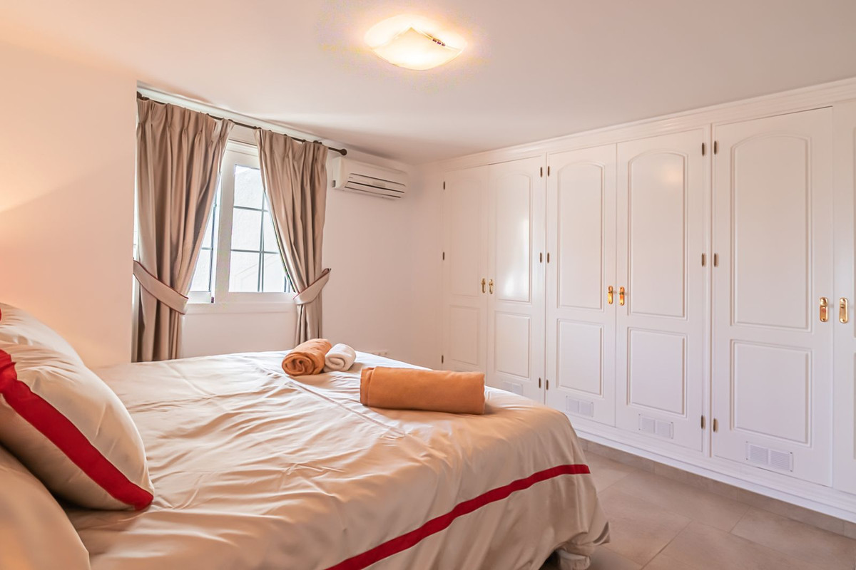 The villa boasts three comfortable bedrooms on each floor, all featuring private en-suite bathrooms. While most bedrooms share a similar design, some offer extra space and fitted wardrobes, adding to their allure. Both floors are independent, connected by an exterior staircase.