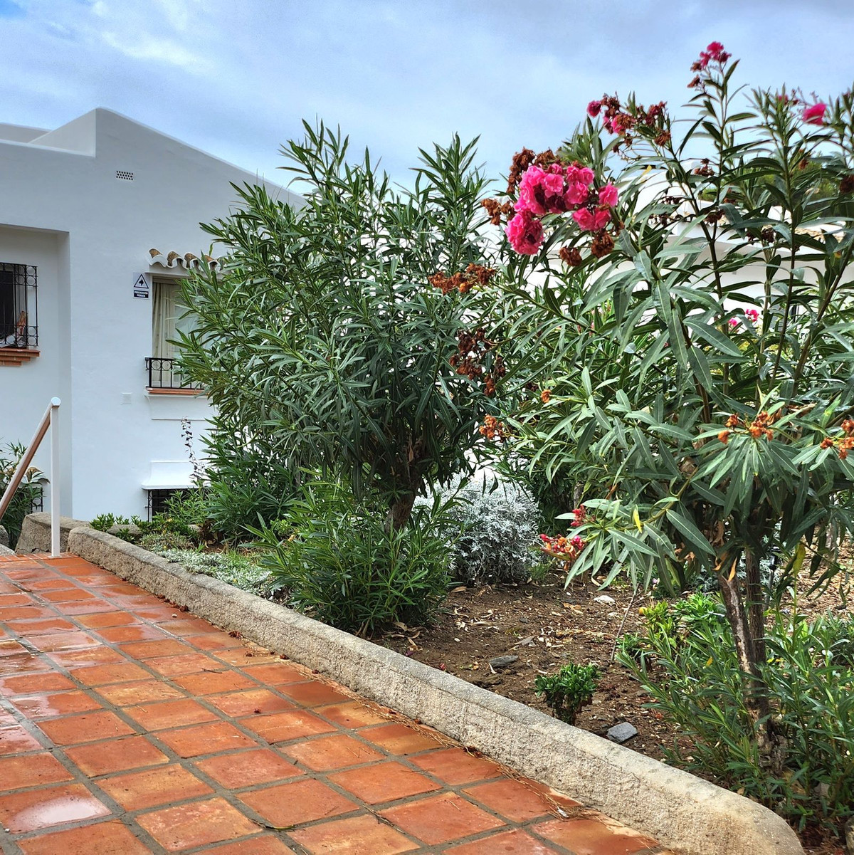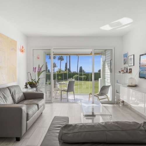 This beautiful apartment hosts two bedrooms, one with sea and garden views .
