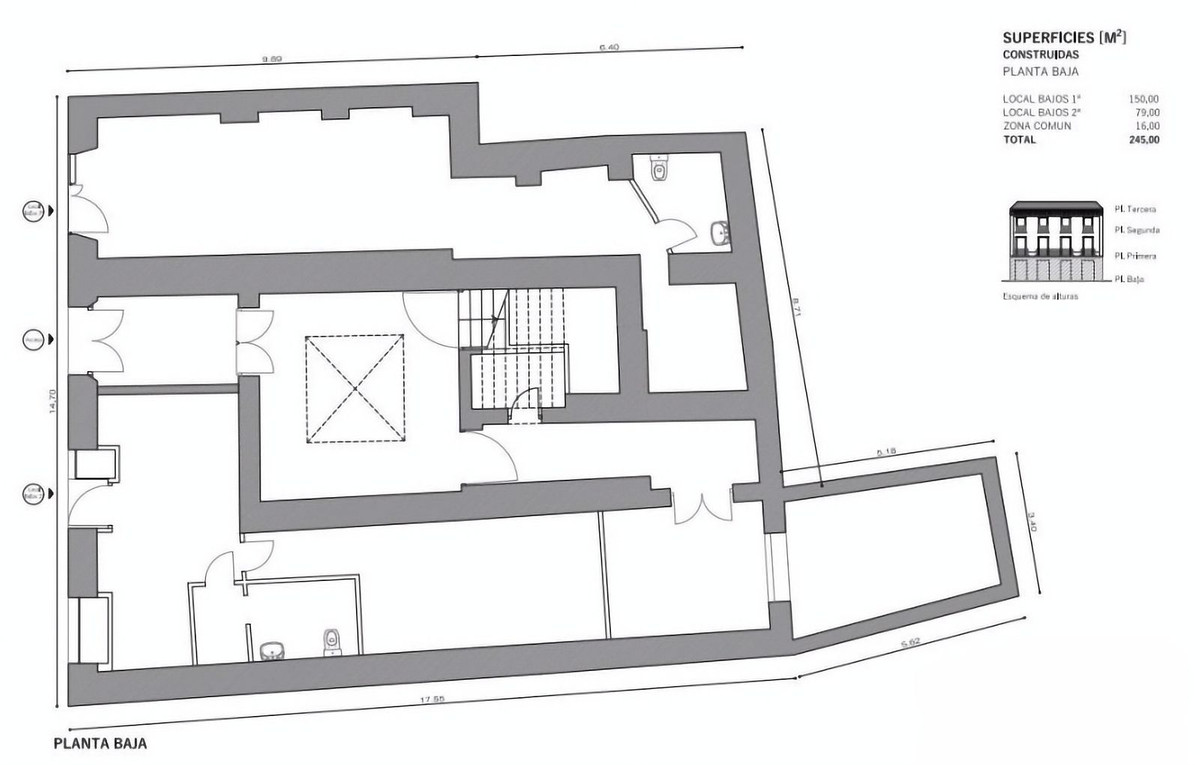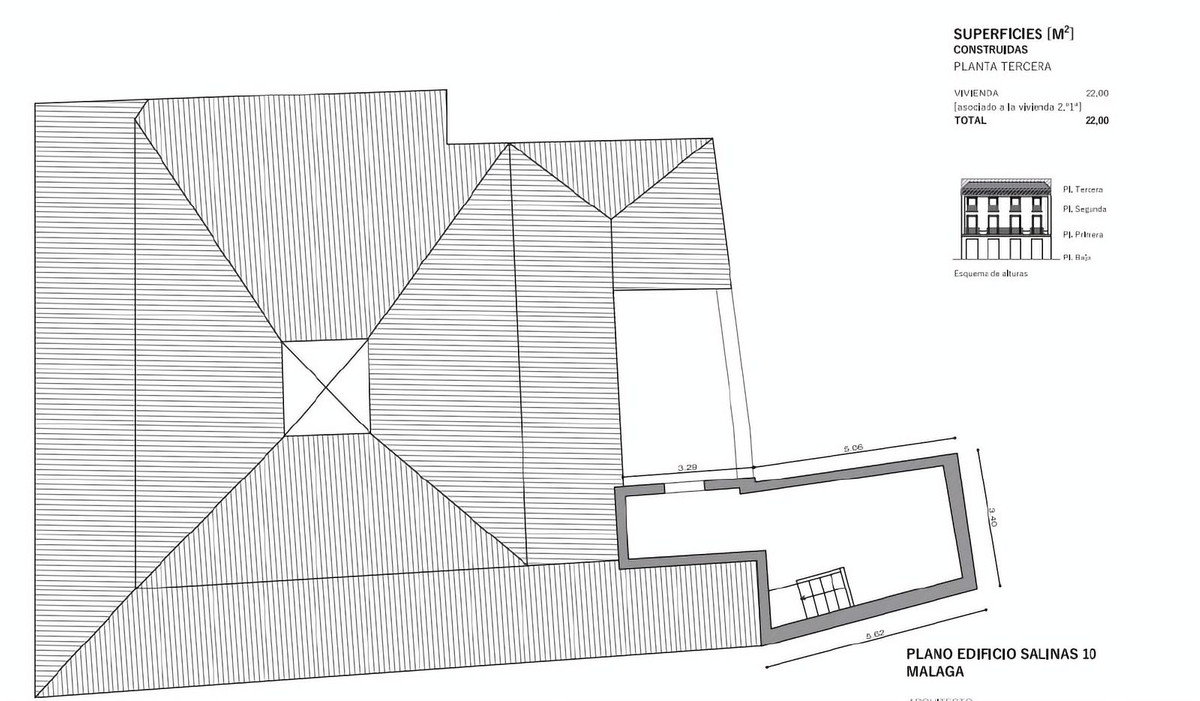 Byggnad till salu i centrala Malaga, ett steg från Calle Larios och nära havet.