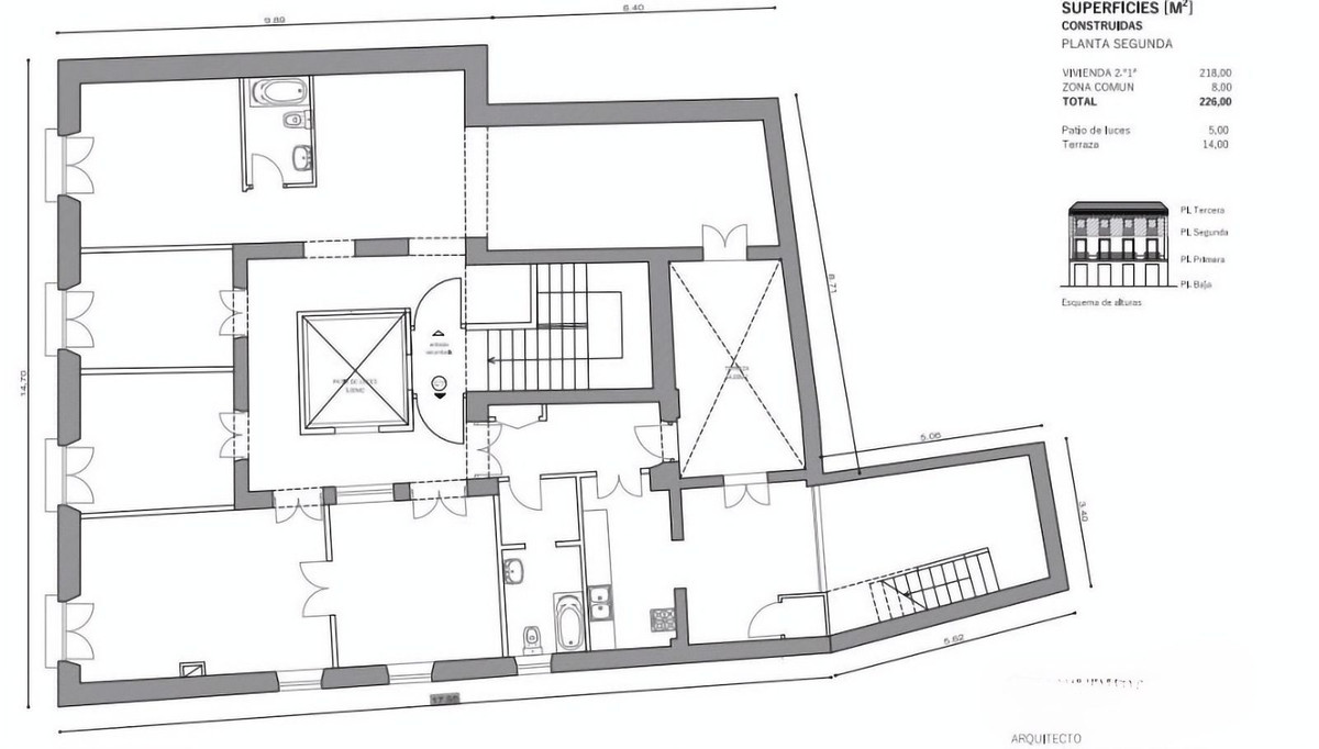 Byggnaden har en bebyggd yta på totalt 950 meter.