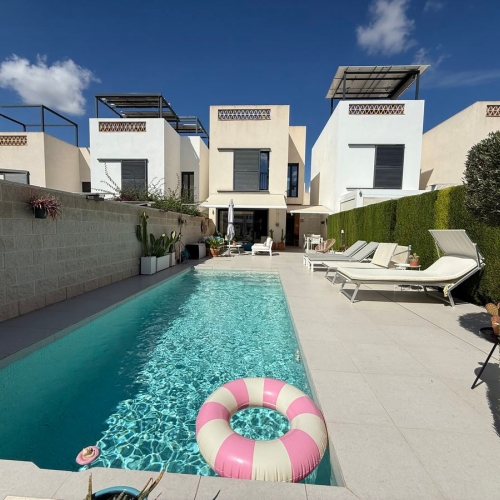 This modern and stylish three-bedroom villa in Benijofar, built in 2022, is centrally located, only 12 minutes from the beaches. The villa comes with numerous extras, such as fitted wardrobes, air conditioning throughout, electric blinds, an aerothermic system, a private pool, parking, a motorized gate, internal and external lighting, a finished underbuild, and white goods.