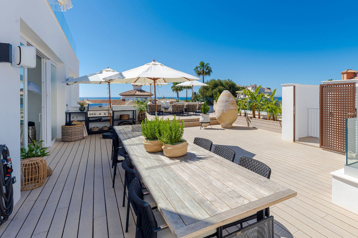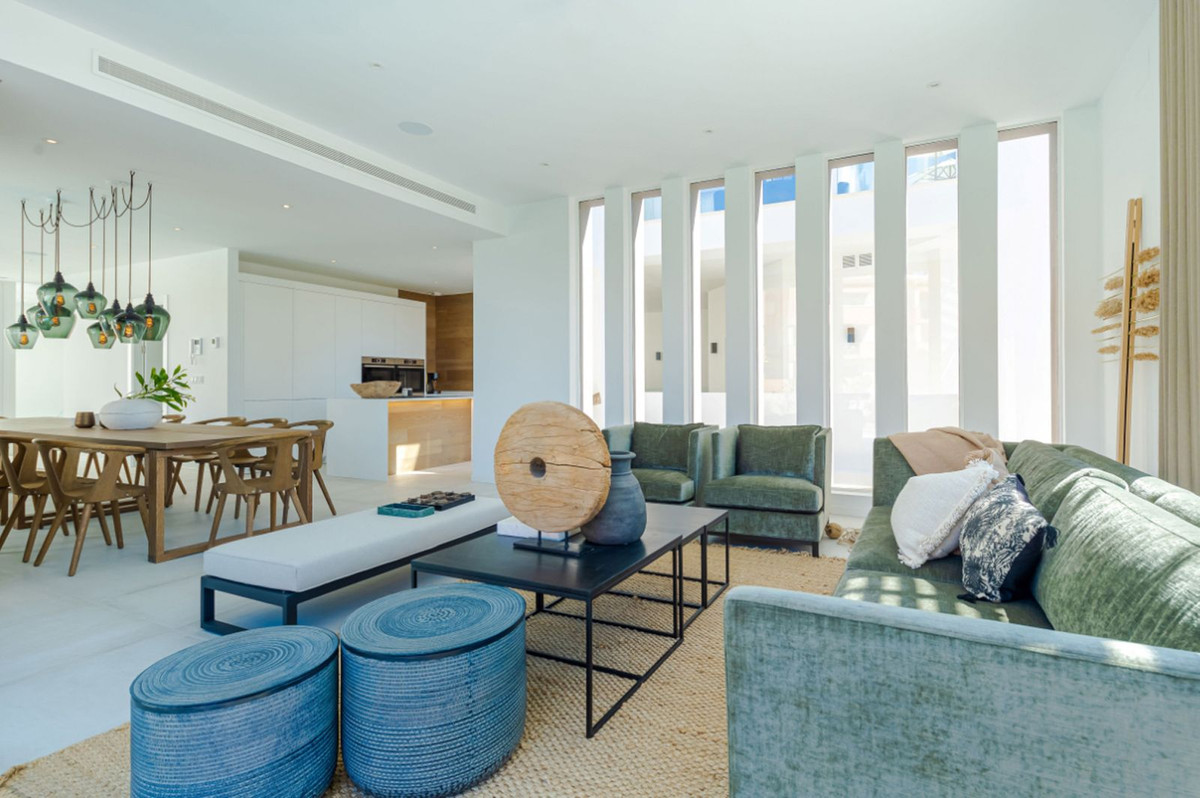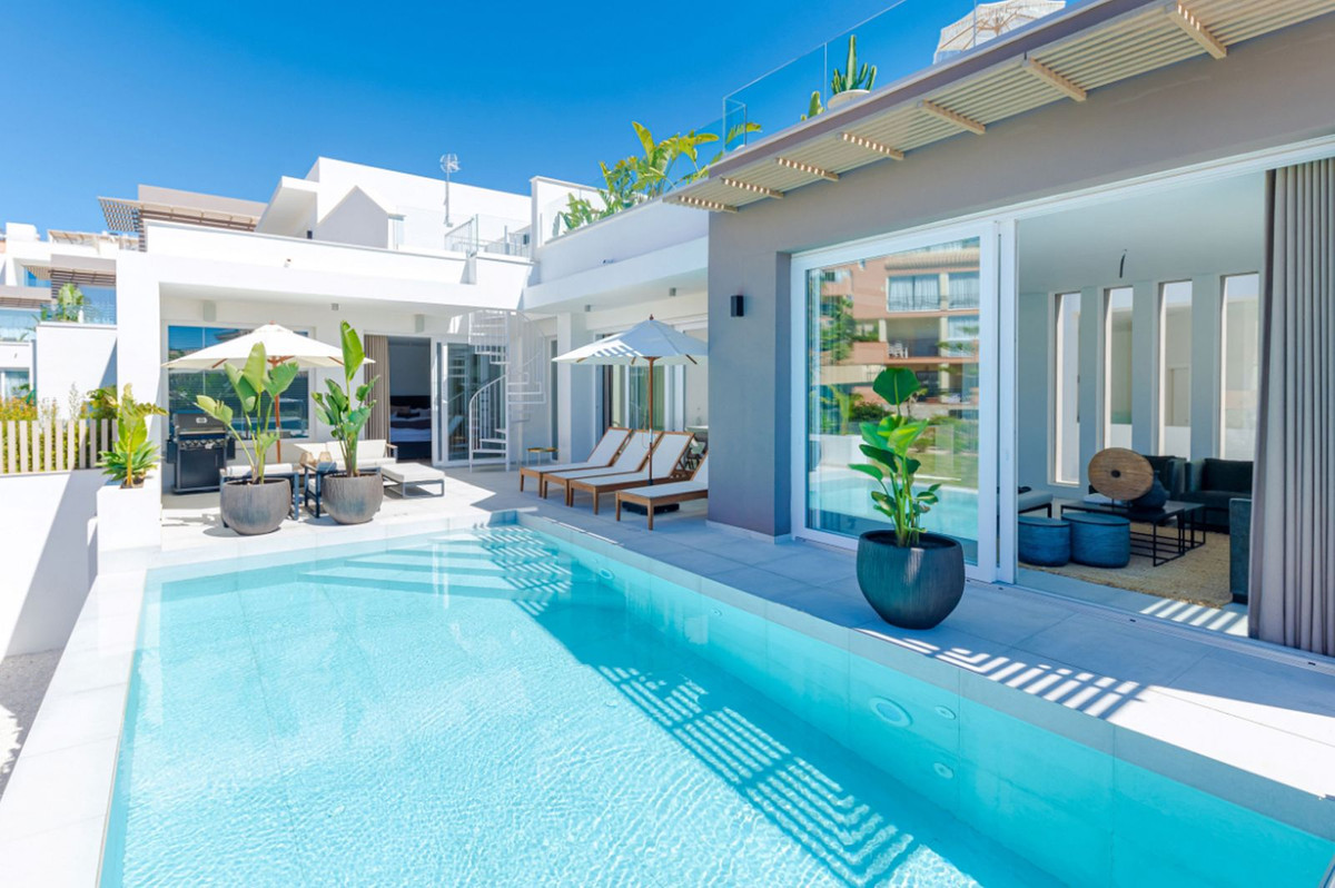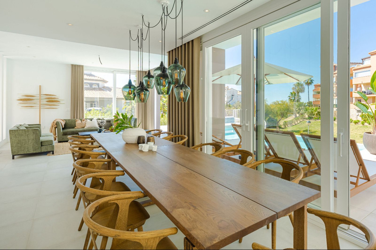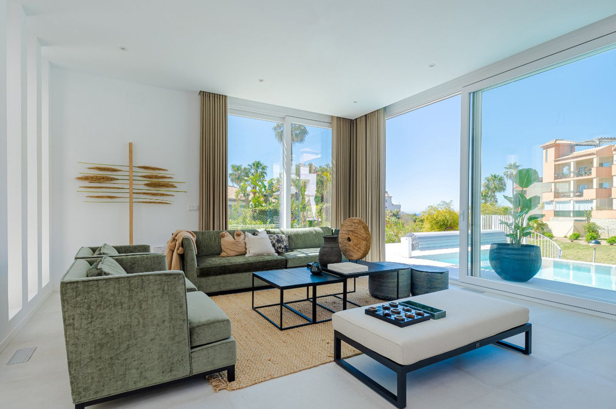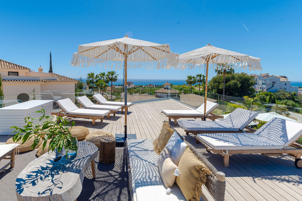 Denna unika samtida 9-rumsfastighet består av TVÅ SEPARAT ENHETER som ligger i anslutning till varandra på två angränsande tomter. Beläget i ett lyxigt, säkert gated community, bara 1,2 km (15 minuters promenad) från stranden, affärer och restauranger i Riviera del Sol och Calahonda. Denna nya utveckling av 12 låghus villor har byggts i en modern stil med mycket avancerade material.