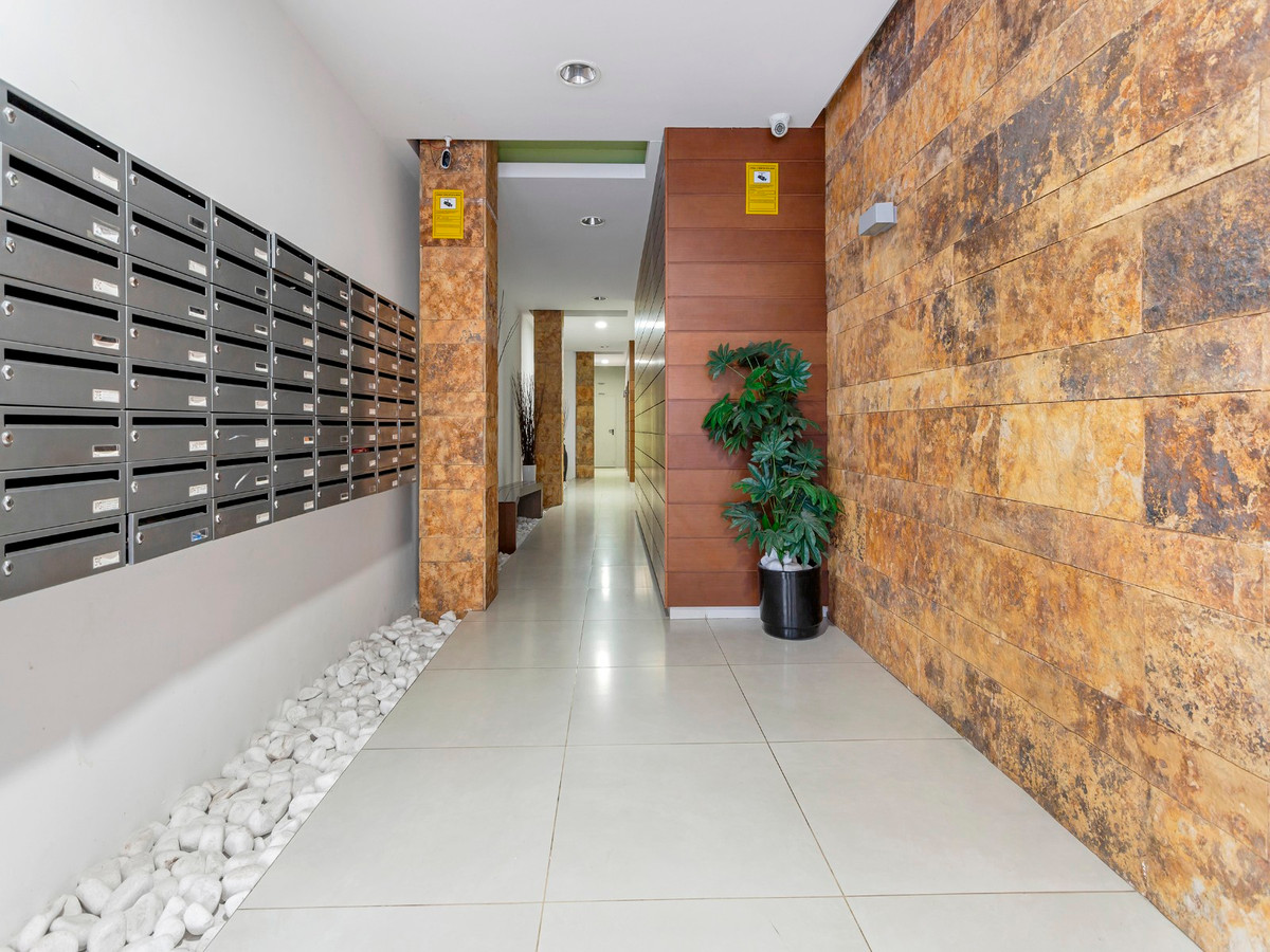 This flat is located in a quiet building with a nice communal roof terrace and wellness area.