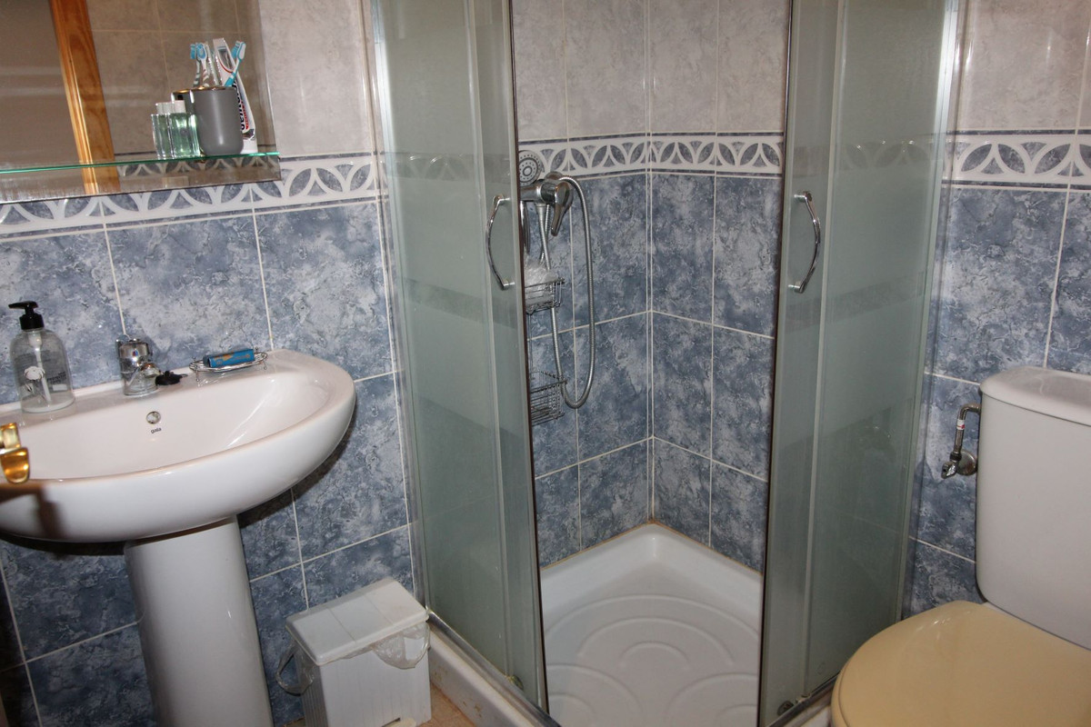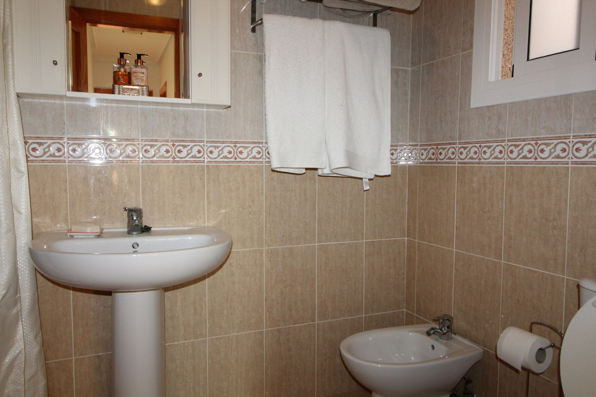 On the first floor there are 2 bedrooms, both have built in wardrobes.  The main bedroom has a double bed and balcony overlooking the street and from which you can enjoy the beautiful sunsets.  The second bedroom is fitted with 2 single beds.  The is a full bathroom with shower/tub on this floor as well.