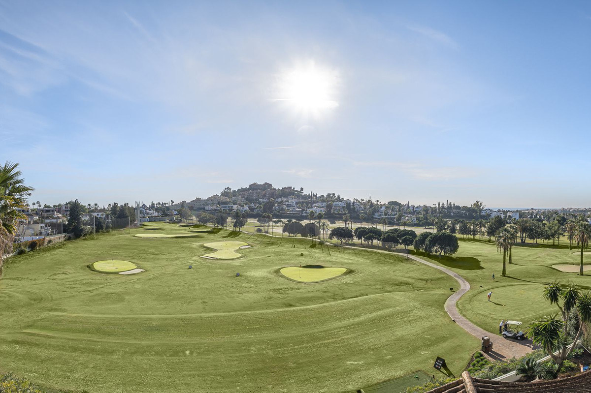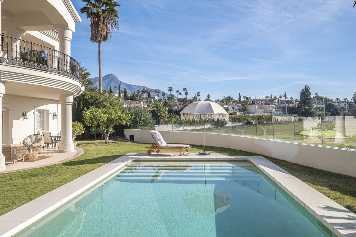 This magnificent villa located in the heart of the prestigious Golf Valley of Nueva Andalucia! This impressive property boasts of an expansive 1.425m2 of plot size and located first line golf. Entering the property, a huge driveway welcomes you to the well-maintained expansive garden area. This recently reformed villa has is divided into 4 floors plus attic, 7 bedrooms, 7 bathrooms, gust toilet, several living rooms and lounge areas, terraces and entertainment area. Upon entering this stunning villa, you will be greeted by a bright hallway with a high ceiling and access to the different areas of the main floor. To the right is a bedroom with ensuite bathroom which could also be an private office.On the left part, you will find a charming independent kitchen fully equipped with high quality appliances. Also, on the main floor you will find the dining area, a separate lounge area and a very chic sitting area with direct access to the terrace. Enjoy the best golf views on the large terrace with different spaces to have your meals or just relax and enjoy the sun and the fantastic views. Going up on the second floor, you will find two grand master bedrooms both with ensuite bathrooms (with bath and shower), both with access to the bright terrace. On the upper floor, you will find a spacious studio which could be used as an office, art studio, another bedroom etc. Going down to the lower floor, you will find, a spacious entertainment room with a cinema, bar, game area; 3 complete bedrooms and 3 bathrooms, a spacious living area-dining room and an open kitchen. We go out to the sunny porch area that leads out to the lush gardens with a beautiful swimming pool. On the lower floor, you will find a very spacious garage for 5-6 cars and a fully equipped gym area. This modern house is equipped with a lift in all floors, individual air-condition hot and cold, fireplace, underfloor heating, alarm system, electric blinds. This classic-style home is built with the best quality materials and modernized elegantly creating a luxurious home in one of the most exclusive areas of Marbella! Surrounded by the best golf courses such as Los Naranjos Golf, Magna Marbella, Las Brisas. Just a few minutes' drive to the beach and Puerto Banus!