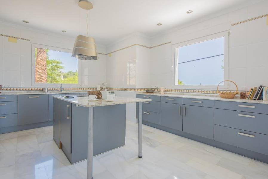 Spectacular villa with some of the best views of Calpe, sea, mountains and Rock of Ifach. Built with quality materials, has been designed from the outset with the spaciousness and brightness in mind. Located in a very private and quiet area has three large bedrooms, designer kitchen fully equipped bathroom with Jacuzzi and whirlpool, dining room with dominant views. Outside there is a swimming pool with jacuzzi, barbecue area and a bathroom with outdoor shower.