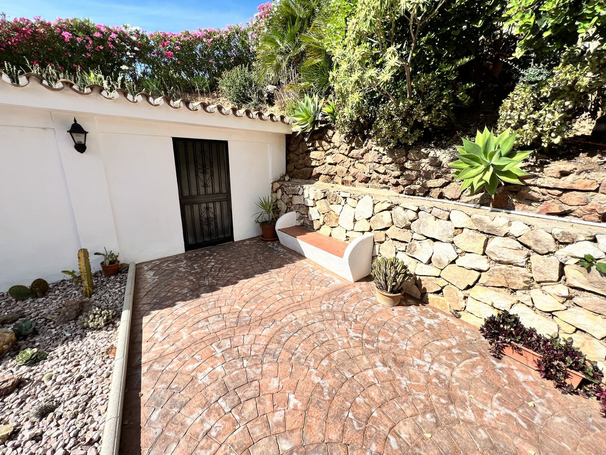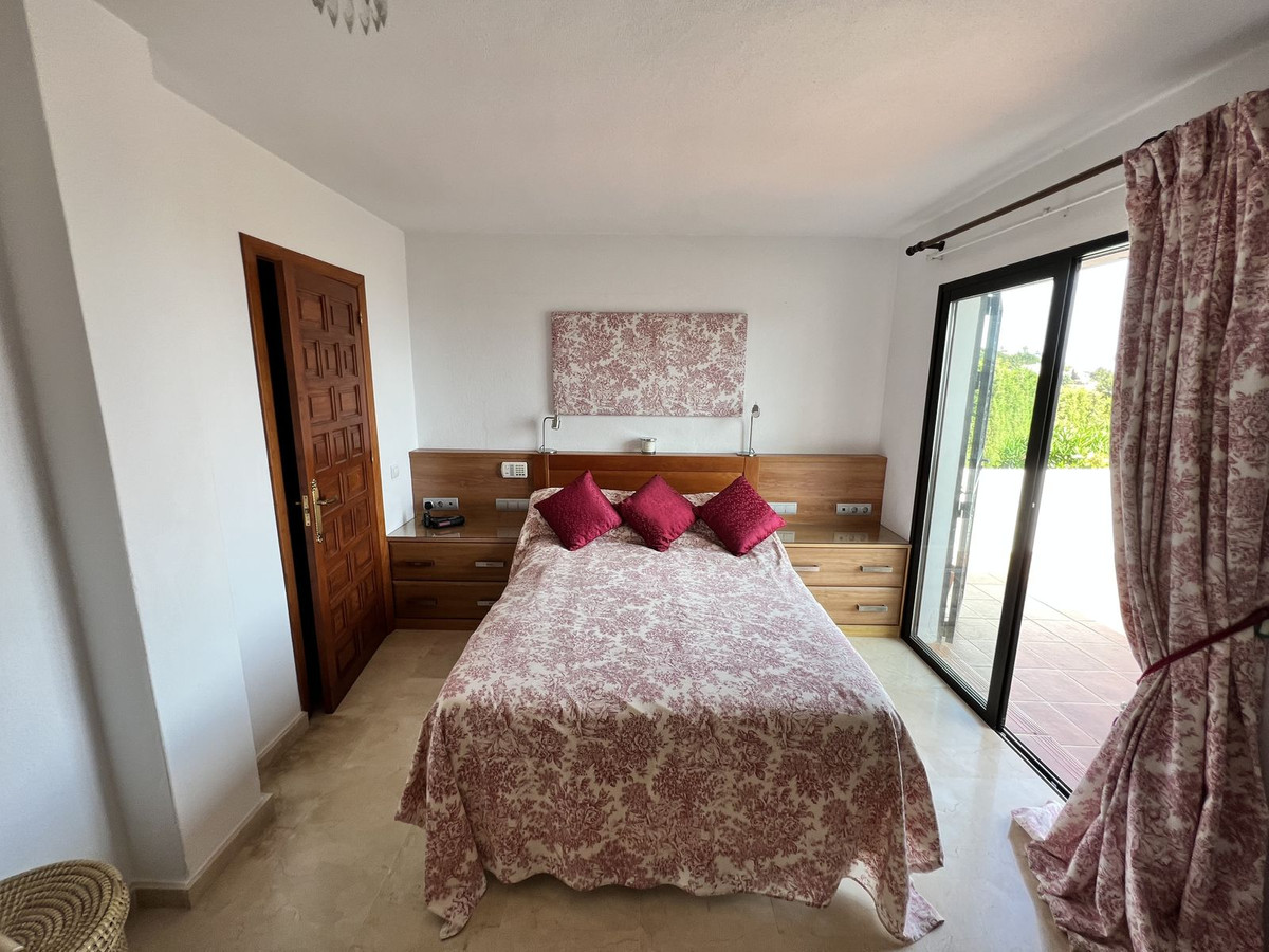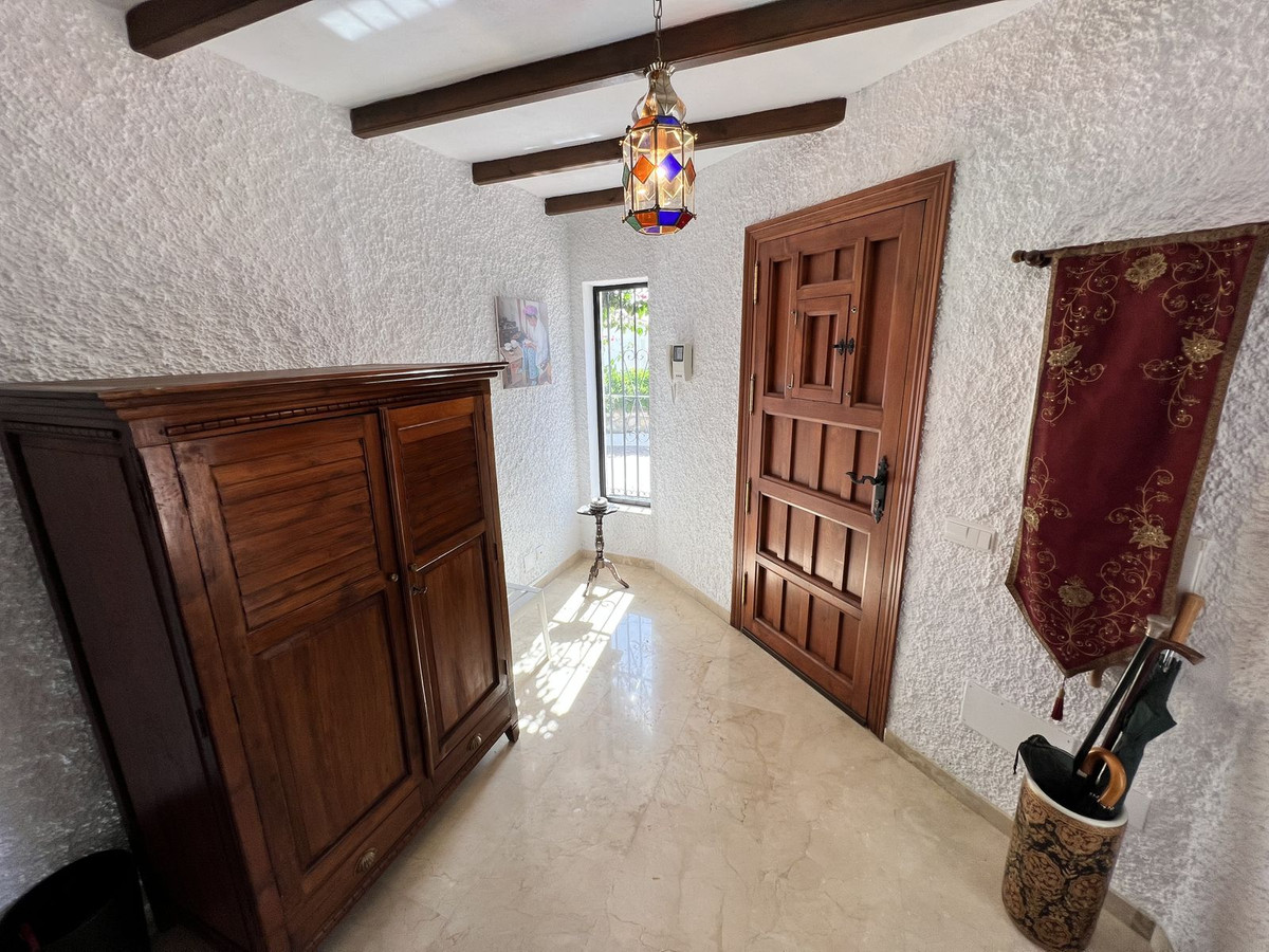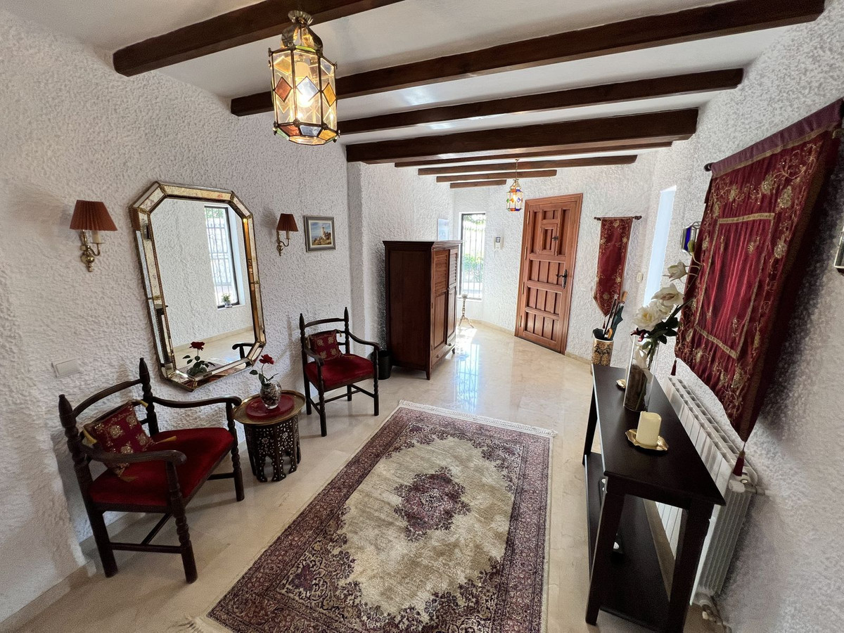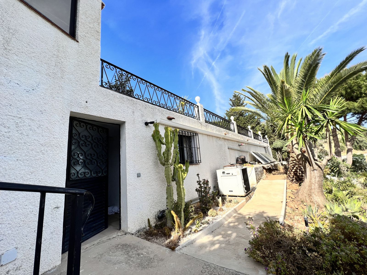 På baksidan av köket, via stalldörrar, finns tillgång till en härlig och rymlig innergård med kaktusträdgård, en stor kaklad väggmålning samt ytterligare förvaring och tillgång till garaget. När du återvänder till villan finns det ett master bedroom med anpassade möbler, ett klädkammare och ett eget badrum. Det finns även tillgång till terrassen. Utanför matsalen finns en härlig täckt terrass med fantastisk utsikt, inklusive inbyggda sittplatser med ett bord med marmorskiva och trappsteg som leder till trädgården och poolen. Från denna terrass går en hiss med direkt tillgång till nivån under.