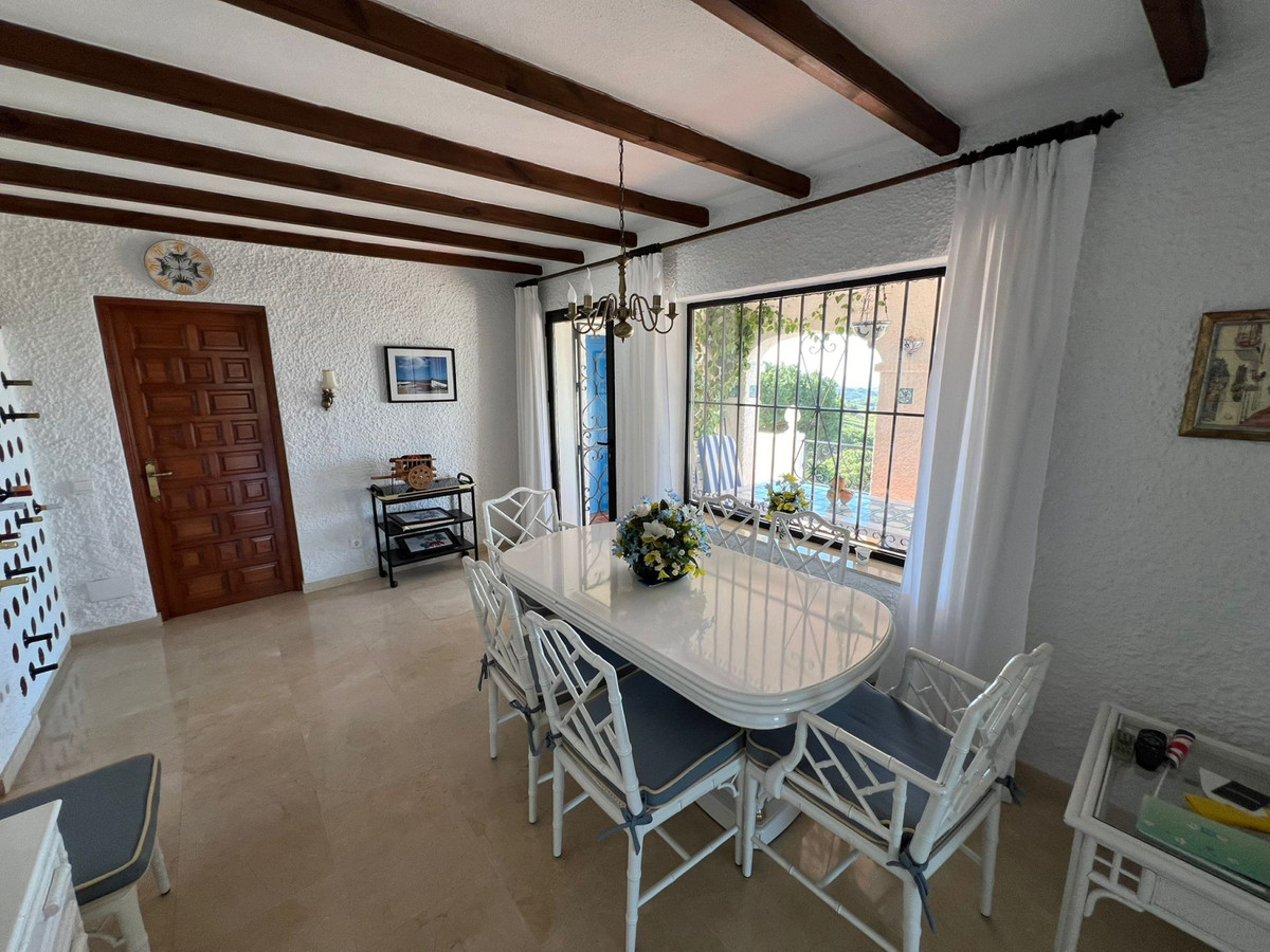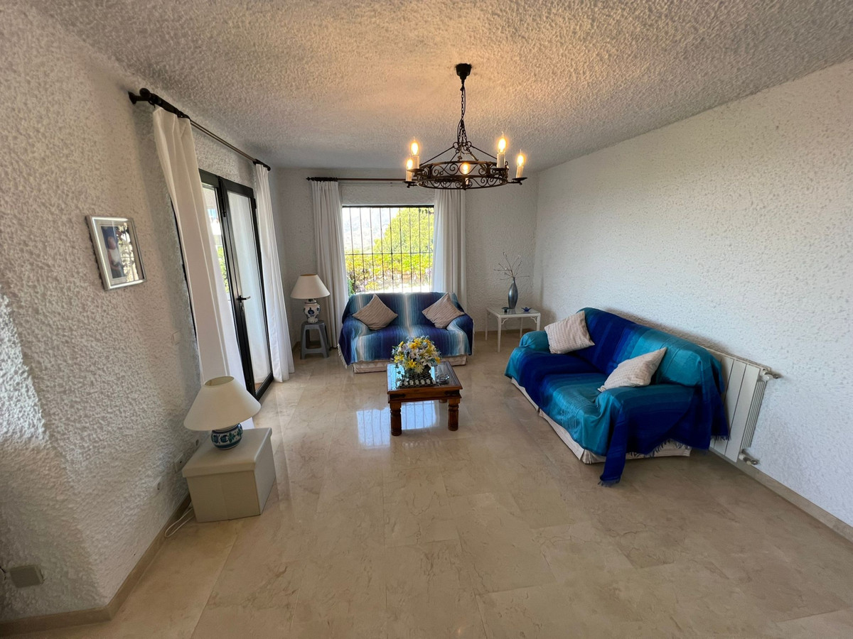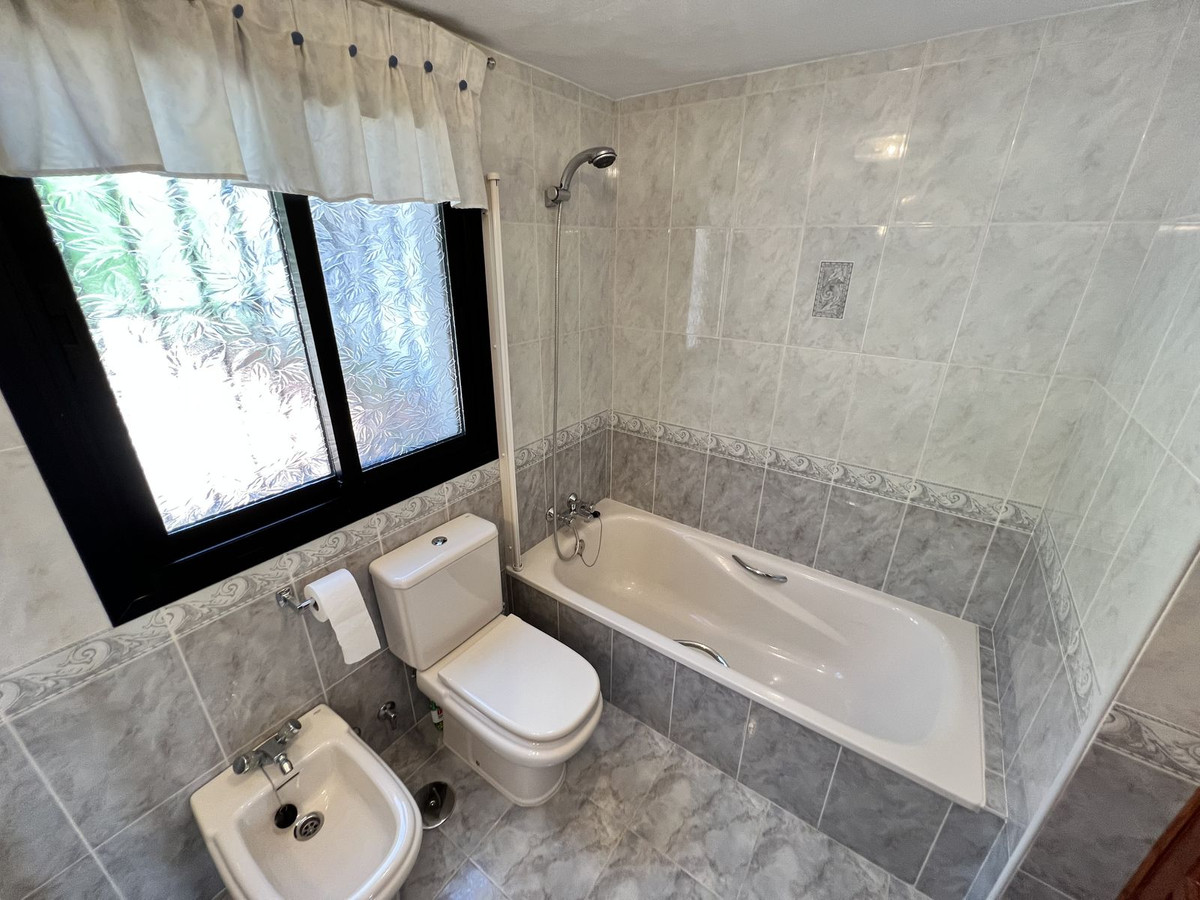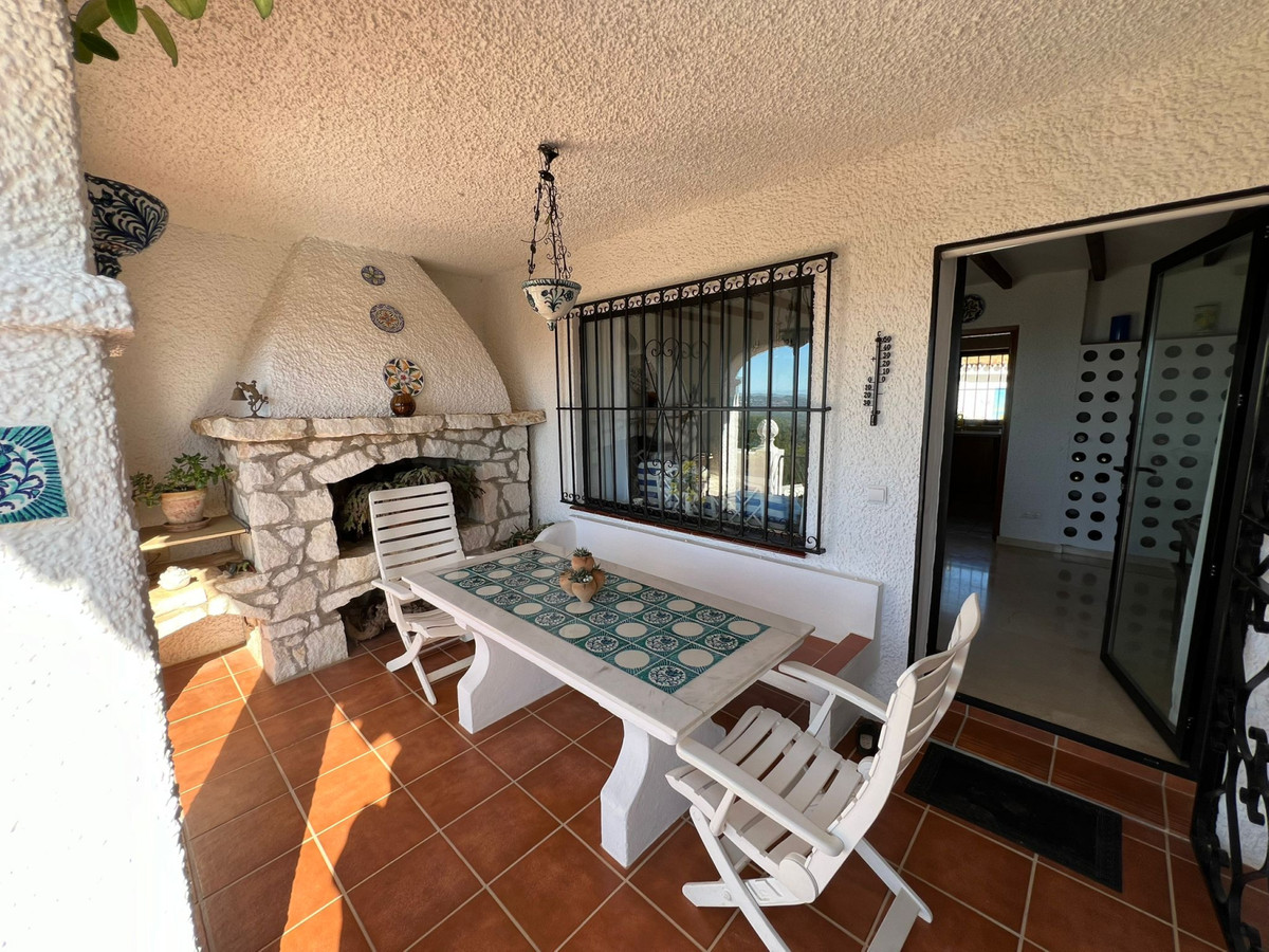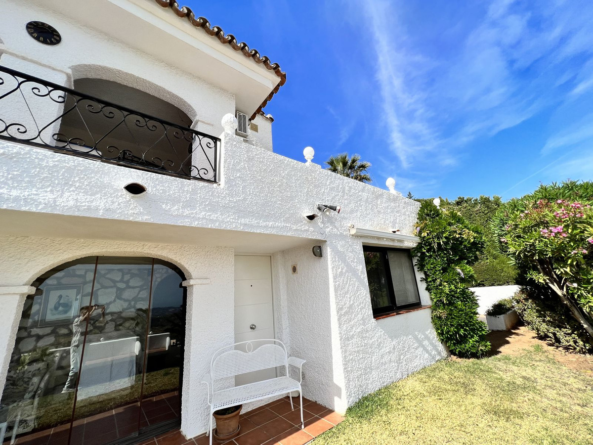 På baksidan av köket, via stalldörrar, finns tillgång till en härlig och rymlig innergård med kaktusträdgård, en stor kaklad väggmålning samt ytterligare förvaring och tillgång till garaget. När du återvänder till villan finns det ett master bedroom med anpassade möbler, ett klädkammare och ett eget badrum. Det finns även tillgång till terrassen. Utanför matsalen finns en härlig täckt terrass med fantastisk utsikt, inklusive inbyggda sittplatser med ett bord med marmorskiva och trappsteg som leder till trädgården och poolen. Från denna terrass går en hiss med direkt tillgång till nivån under.