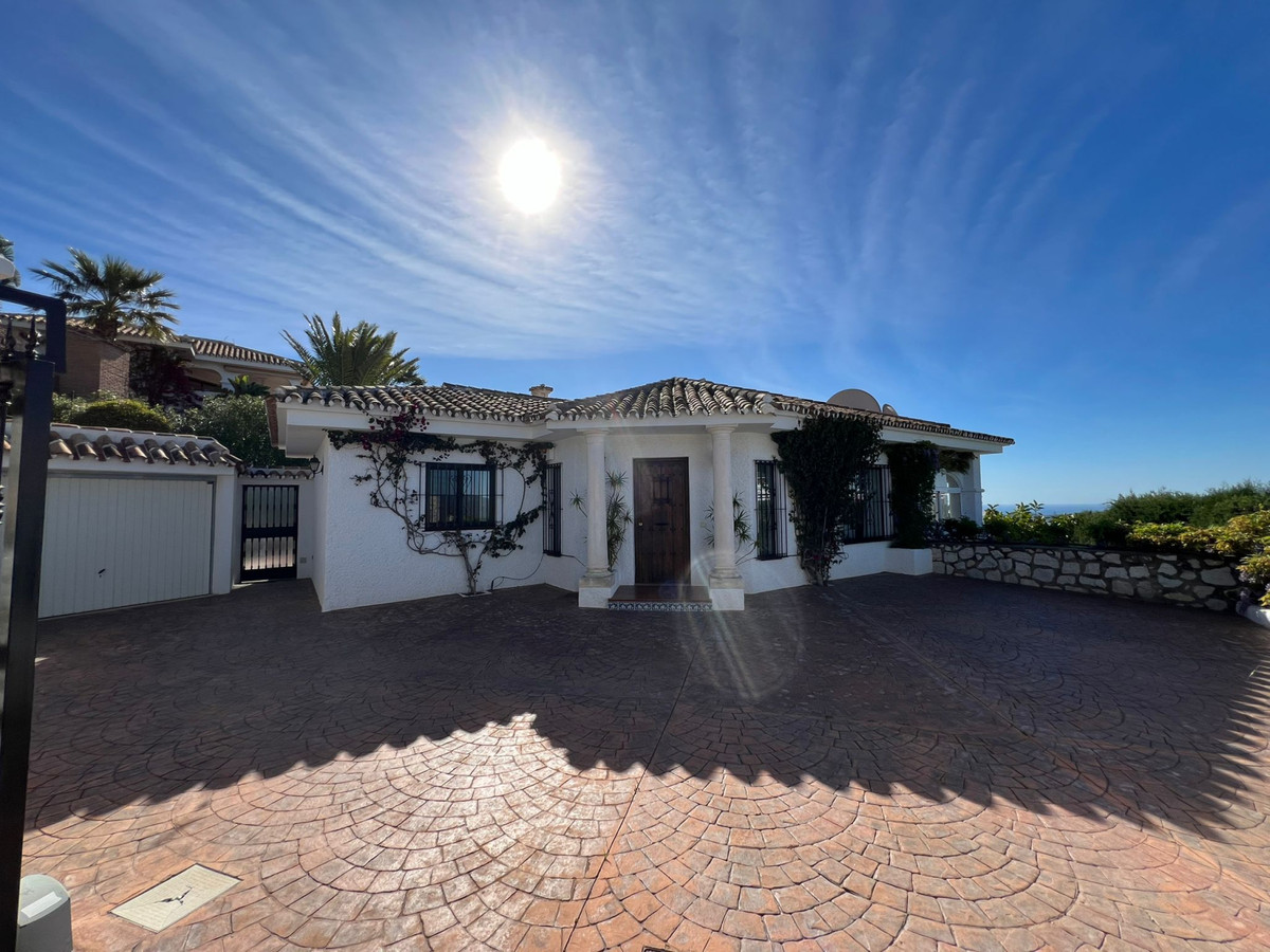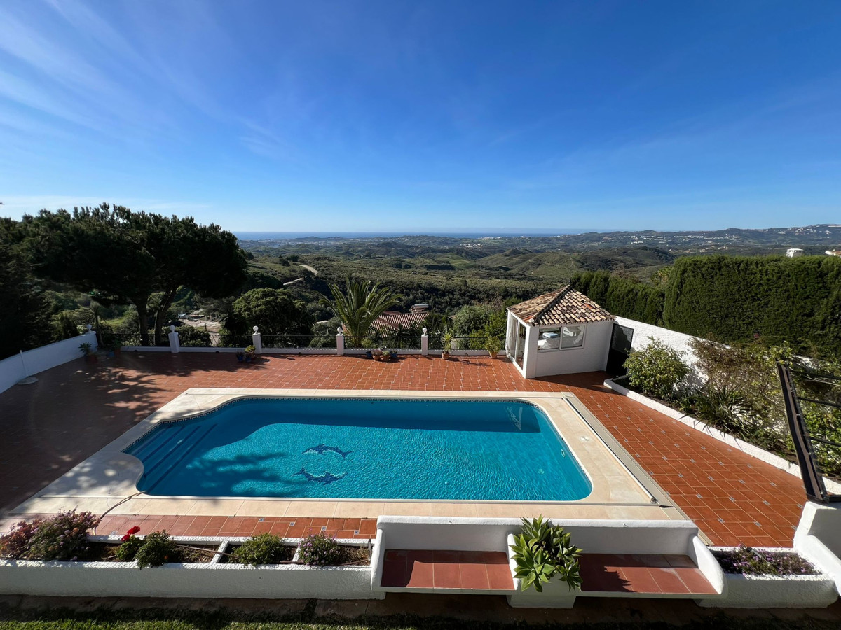 En exceptionell möjlighet att äga en fantastisk villa med hisnande 180-graders panoramautsikt över havet, belägen i närheten av den charmiga, historiska vitkalkade byn Mijas.