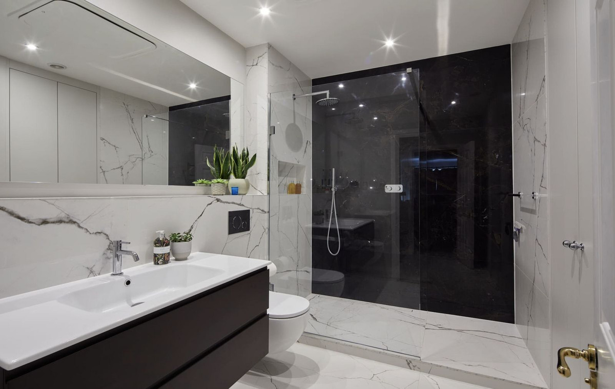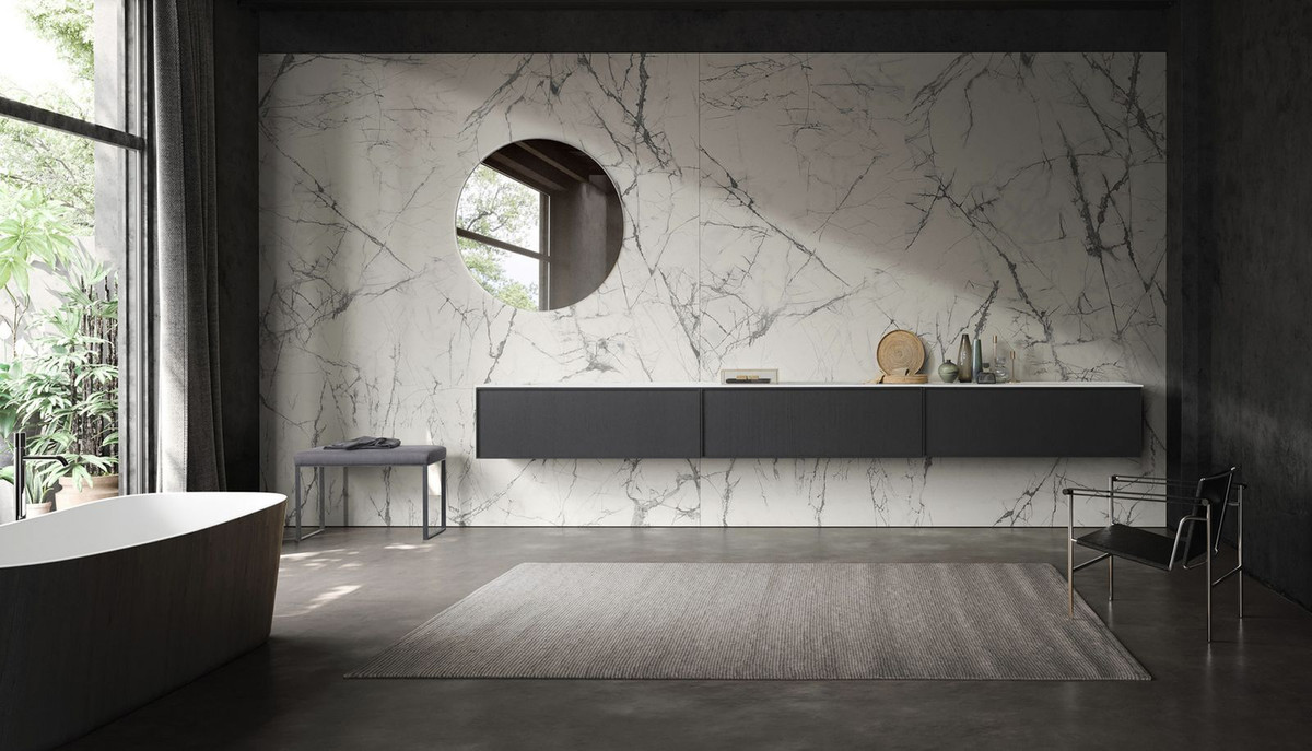 - Badrumsväggar med COVERLAM väggplattor på 1200x2700
