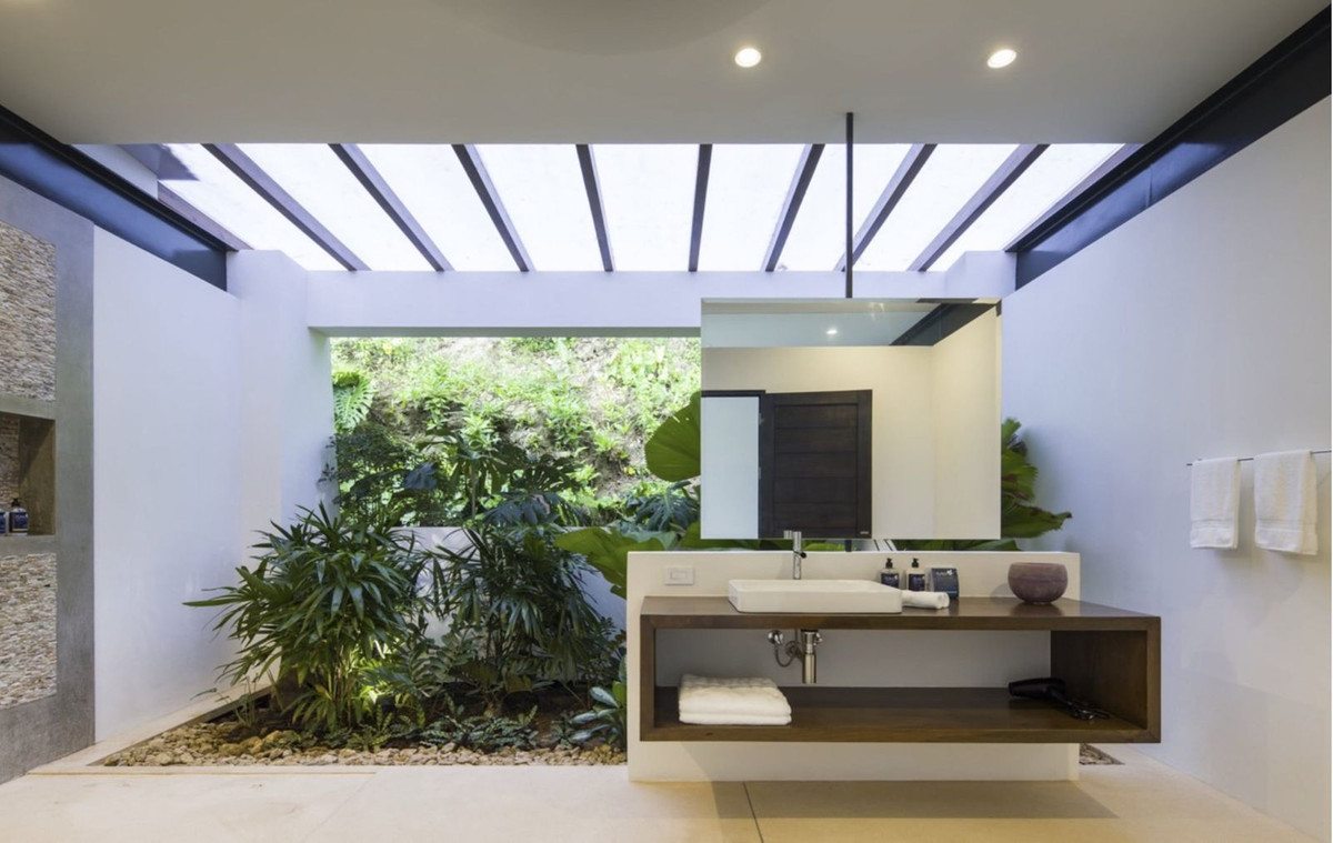 Alla sovrum och badrum har stora fönster för att göra den moderna villan ljus och ljus.