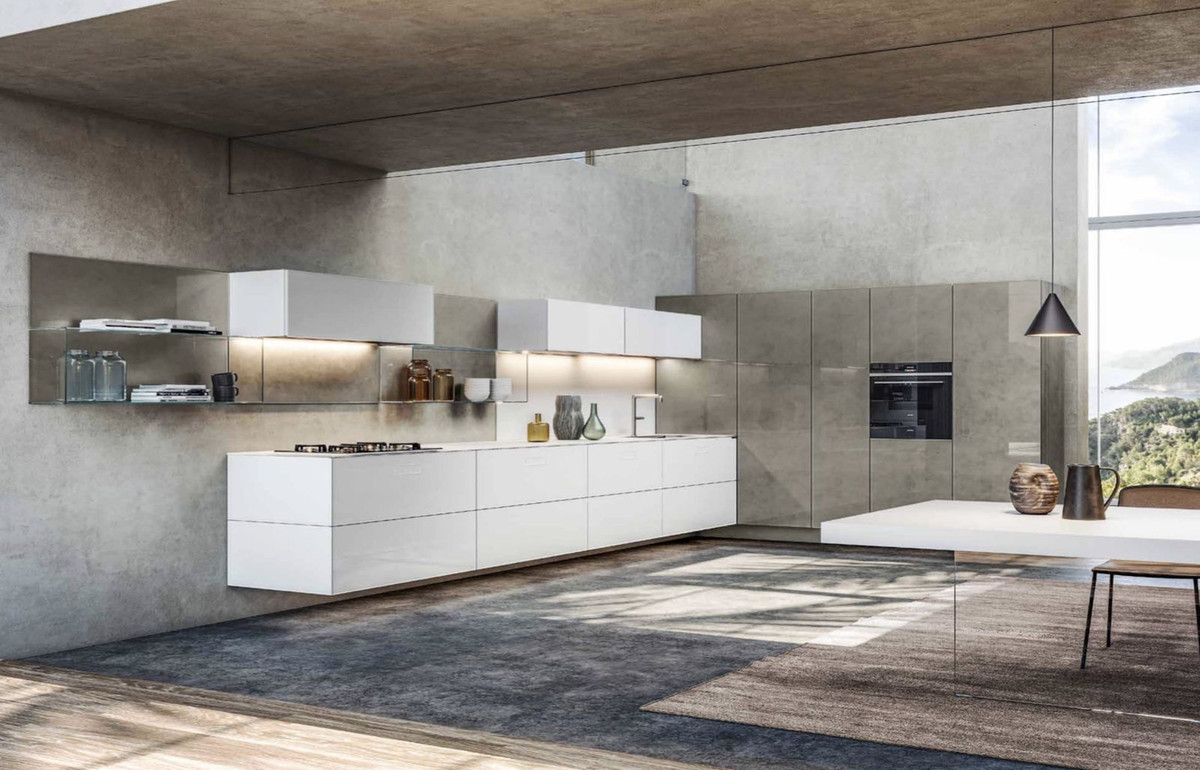 - Fullt utrustat kök med dörrar med aluminiumram och täckt med COVERLAM (färg att välja)
