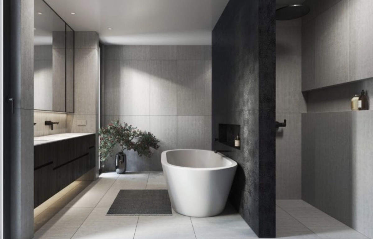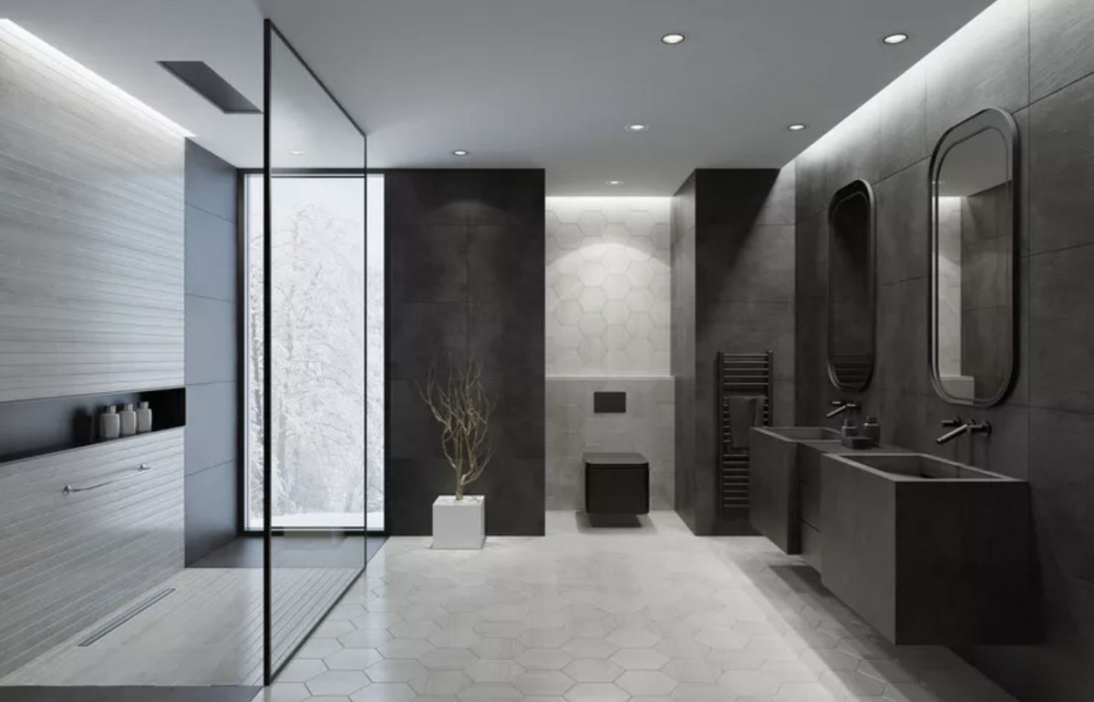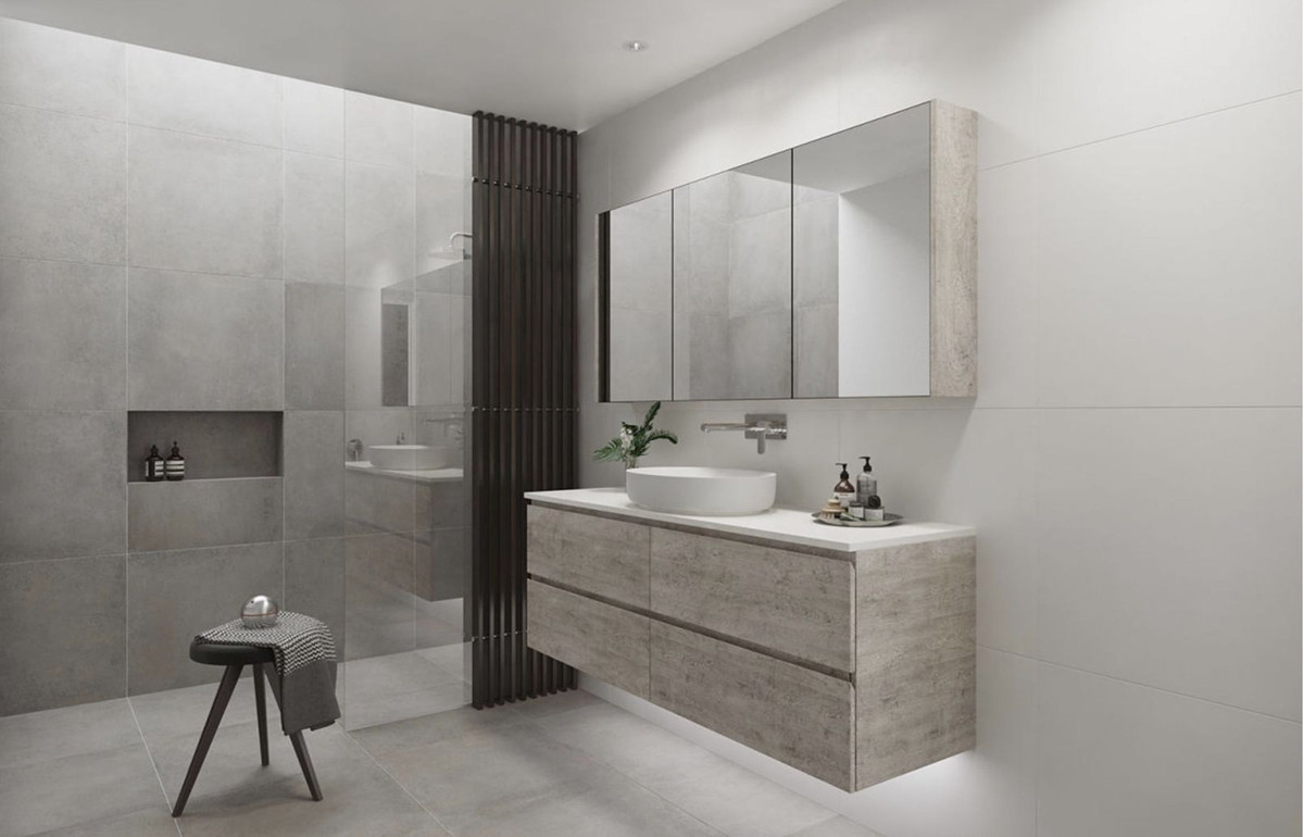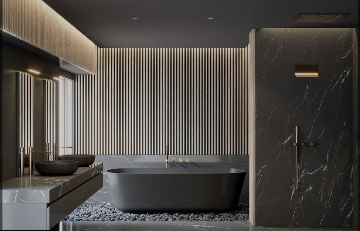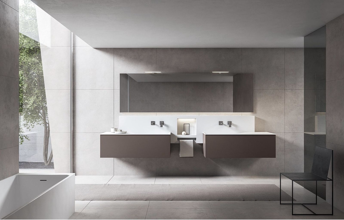 - Badrumsväggar med COVERLAM plattor (GRESPANIA) 2700X1200 (Färg att välja)