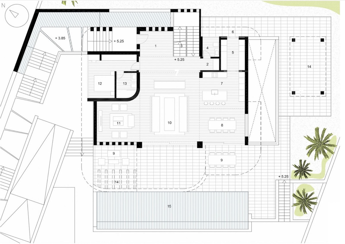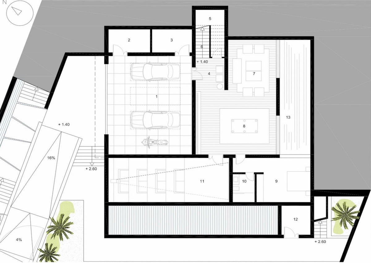 Källare: garage, installationsrum, förråd, distributör, maskinrum för vattenfall, vardagsrum, biljardrum, 1 sovrum med fönster i full storlek och naturligt ljus, eget badrum, biorum, poolinstallationsrum och en Zen uteplats.