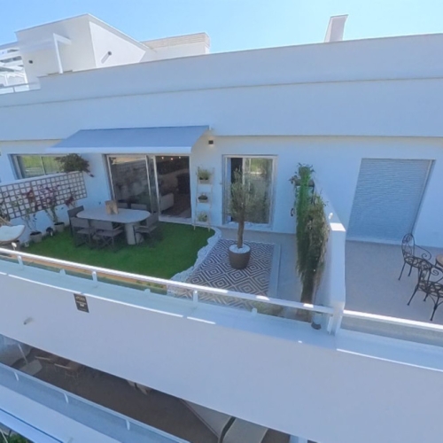 När du kliver ut på terrassen möts du omedelbart av en imponerande utsikt över Gibraltar och Afrika, en vacker bakgrund för alla dagar. Den första terrassen är utrustad med ett matbord och en loungedel, perfekt för måltider utomhus eller bara njuta av den friska luften.