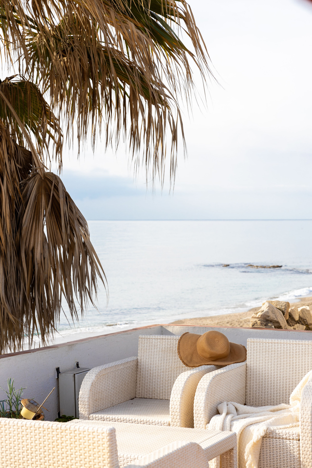 The villa is located on the beachfront, offering stunning sea views with its own access to the beach. In addition, it has a large private terrace, from where you can enjoy the views and relax outdoors.