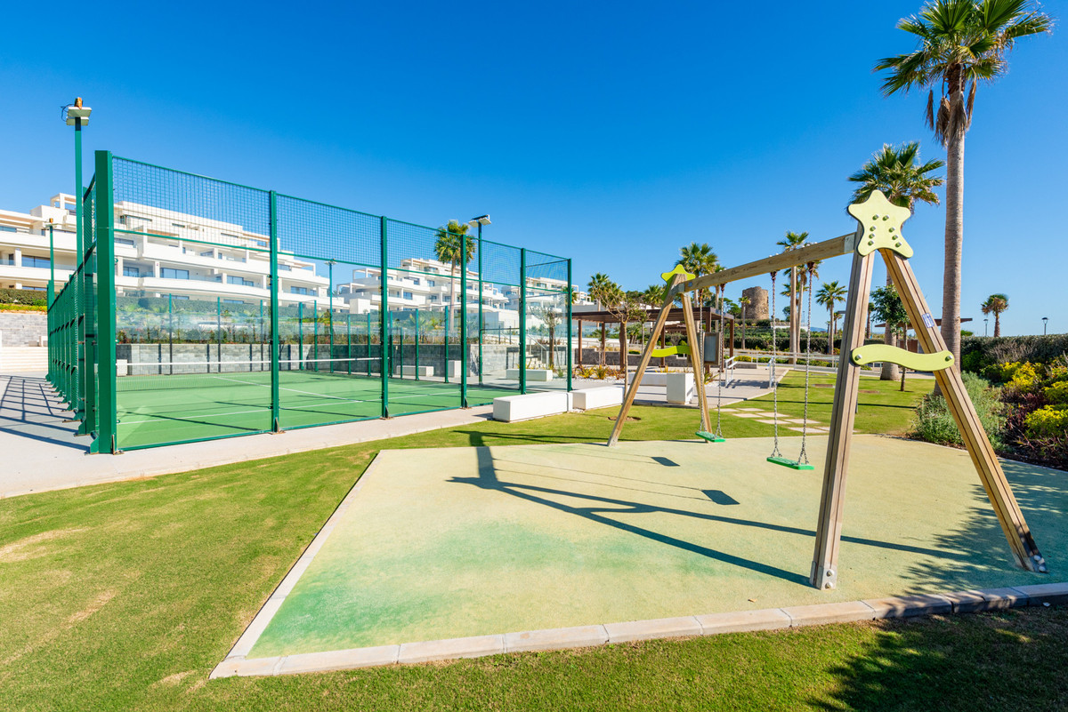 Komplexet ligger vid stranden med paseo maritime som går direkt framför och ger enkel tillgång med cykel till Estepona stad. Den populära Velerin chiringuito ligger några steg bort och Kempinski ligger några minuter med bil.