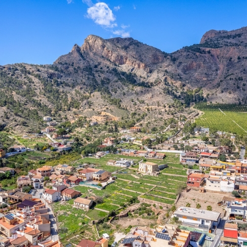 PROPERTY LOCATION The property is located in a quiet area, 5 minutes from the Carrefour shopping center and the city center of Orihuela and Bigastro, with good road access and good connections to both cities. The house is surrounded by residential houses with similar characteristics and is easily accessible by road and in the surrounding area where you can find supermarkets, restaurants and all necessary services. M. Ext. Aluminium M.Int. Wood Hot water boiler Equipped independent kitchen. Single-layer facade Rustic floor Southeast oriented