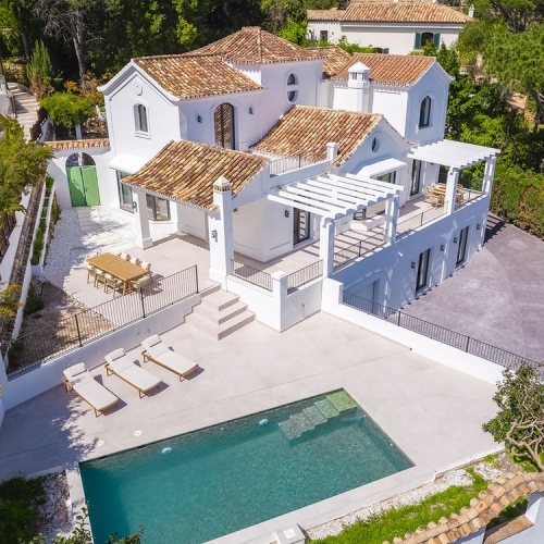 This Andalusian-style villa has been fully renovated using the latest high-quality materials and finishes. No detail has been overlooked to ensure a seamless blend of timeless charm and contemporary elegance.