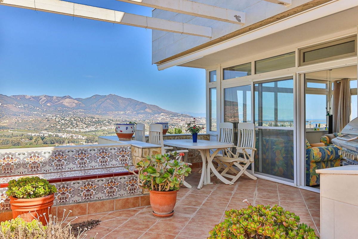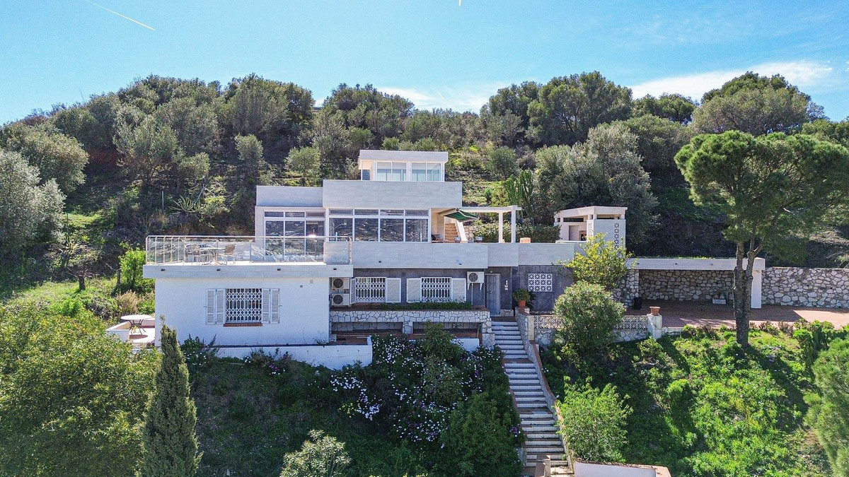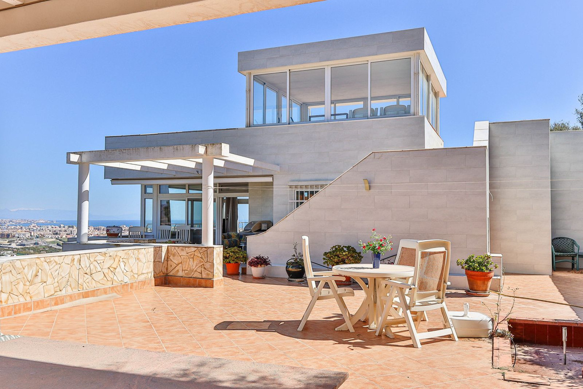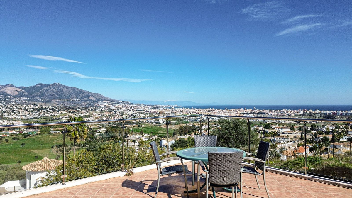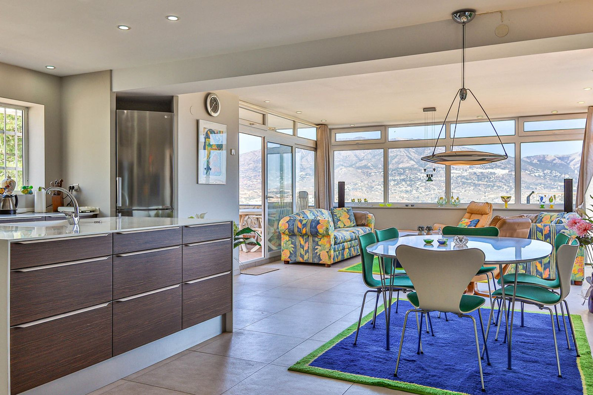 This villa was designed by Danish architects and built with double walls with insulation. The house has undergone a total renovation, including new electrical and plumbing installations as well as underfloor heating throughout. It also has the most stunning views of the Sierra Mijas mountains, sea, Sierra Nevada (mountain with snow in the winter), green nature and overlooking the cities of Mijas and Fuengirola and is conveniently located just a 5-minute drive from Fuengirola, the beaches, Miramar shopping center, and Castillo Sohail.