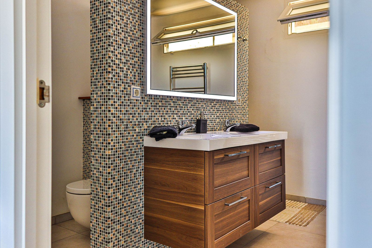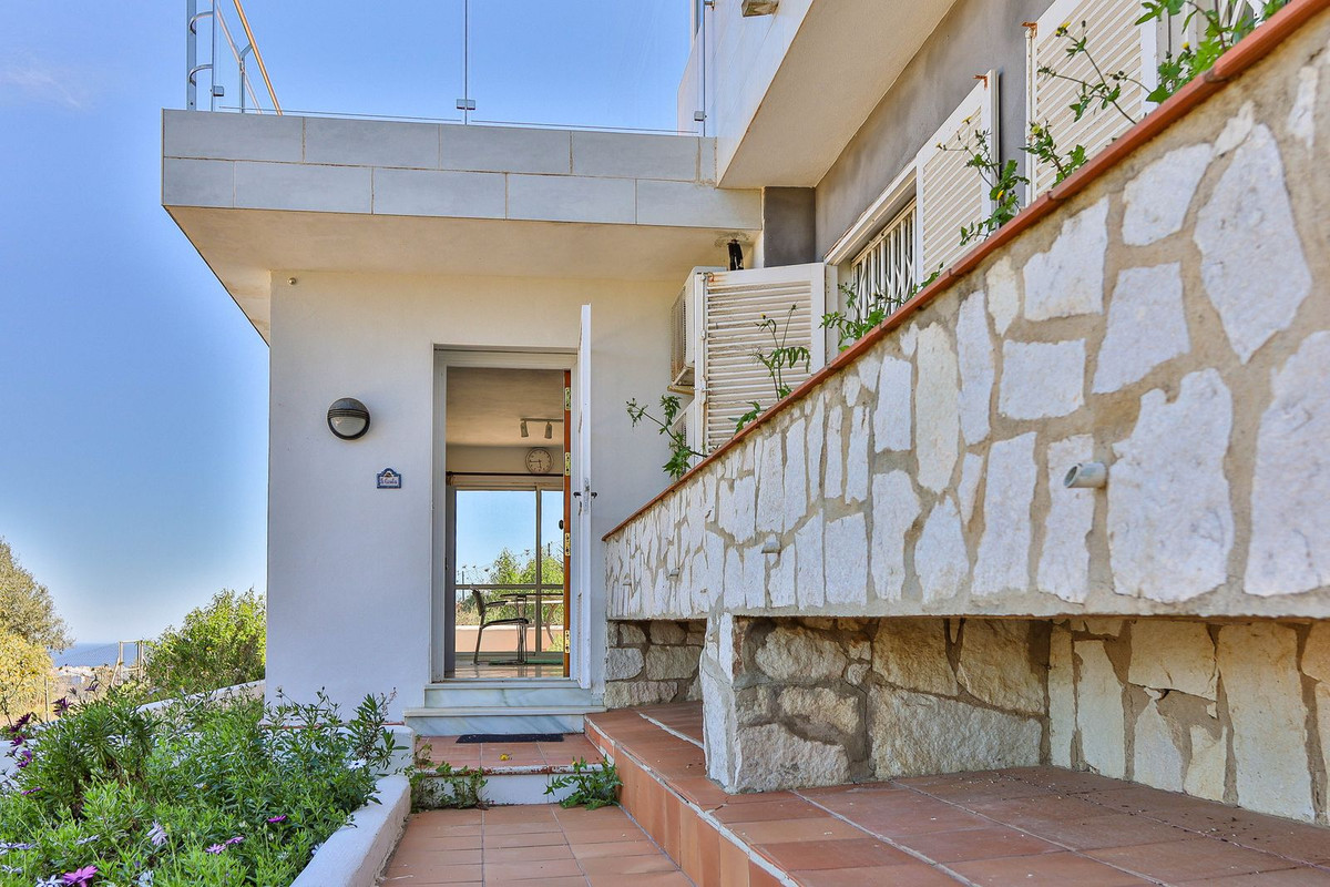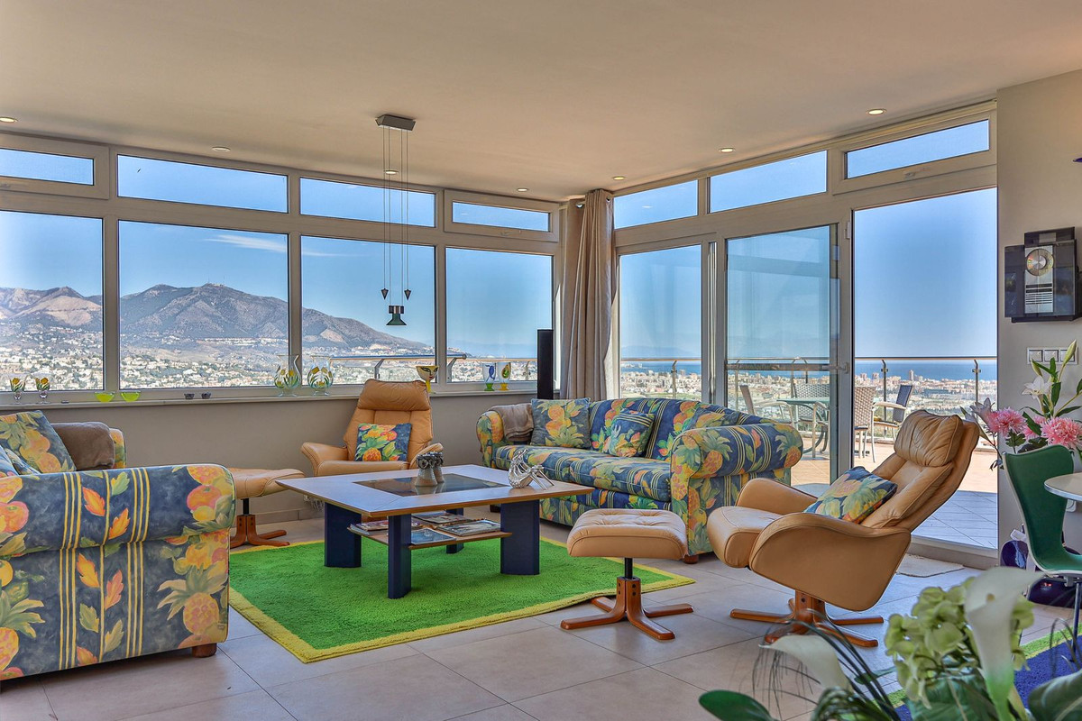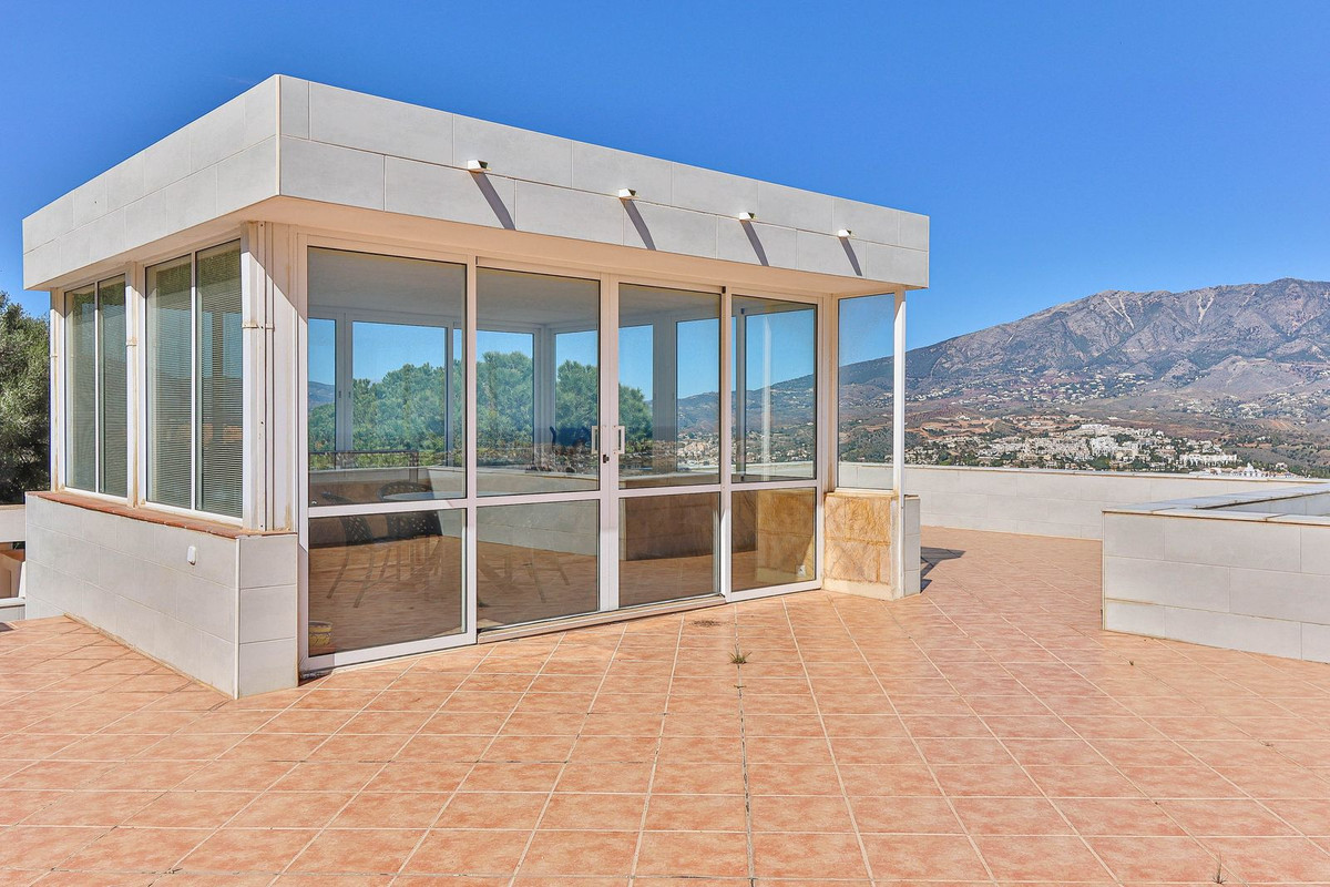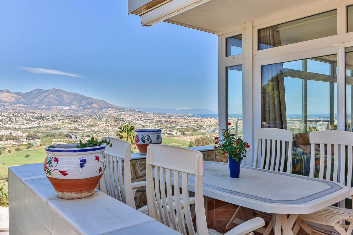 This villa was designed by Danish architects and built with double walls with insulation. The house has undergone a total renovation, including new electrical and plumbing installations as well as underfloor heating throughout. It also has the most stunning views of the Sierra Mijas mountains, sea, Sierra Nevada (mountain with snow in the winter), green nature and overlooking the cities of Mijas and Fuengirola and is conveniently located just a 5-minute drive from Fuengirola, the beaches, Miramar shopping center, and Castillo Sohail.