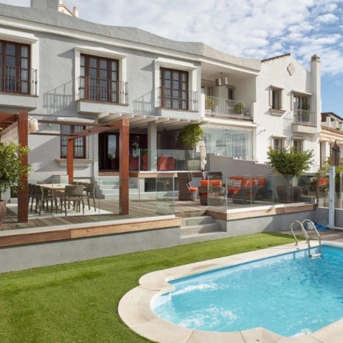 The upper floor comprises three bedrooms and two bathrooms. The master bedroom includes an en-suite bathroom and a very sunny open terrace with panoramic views.
